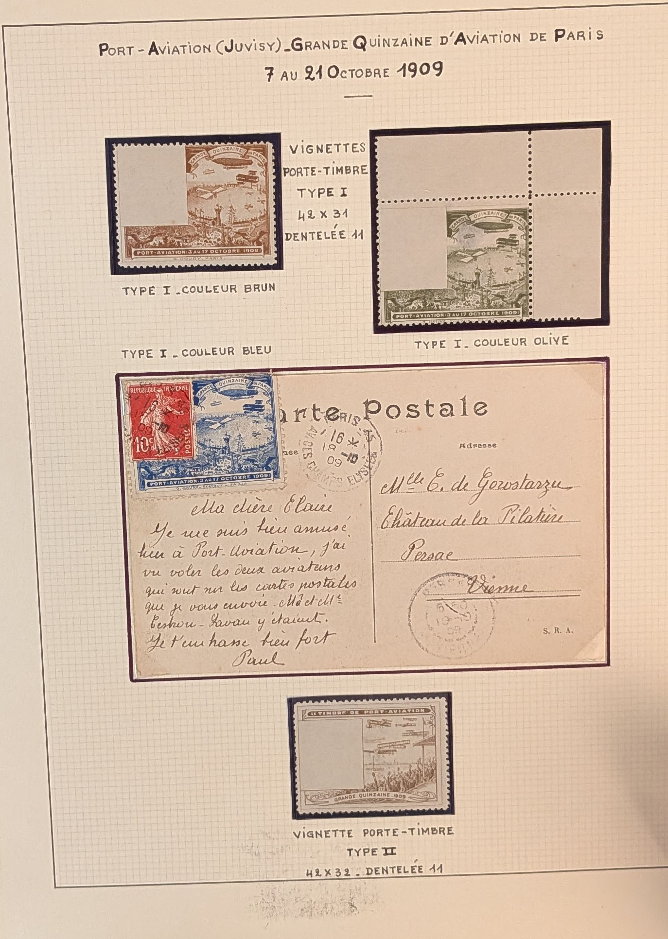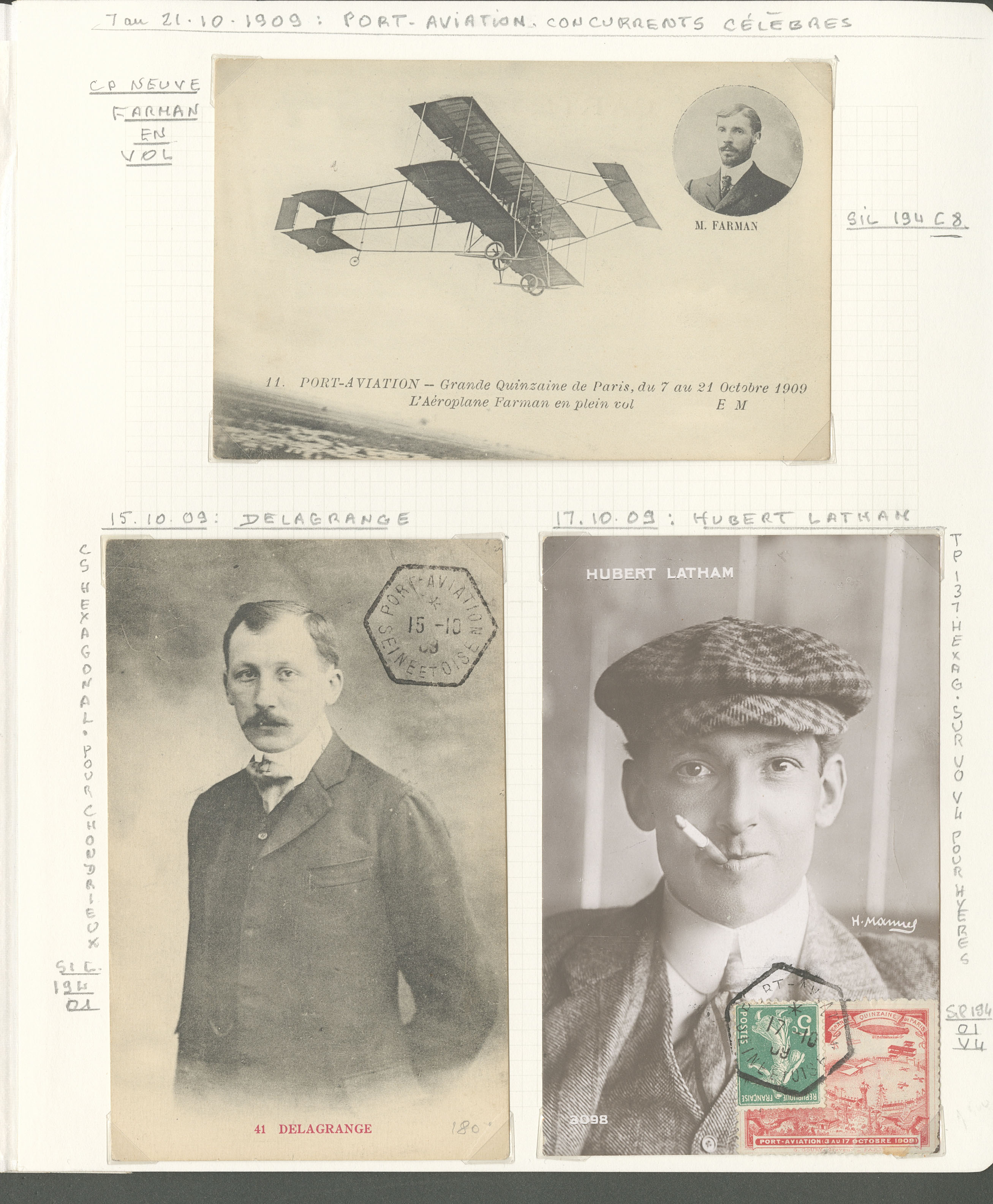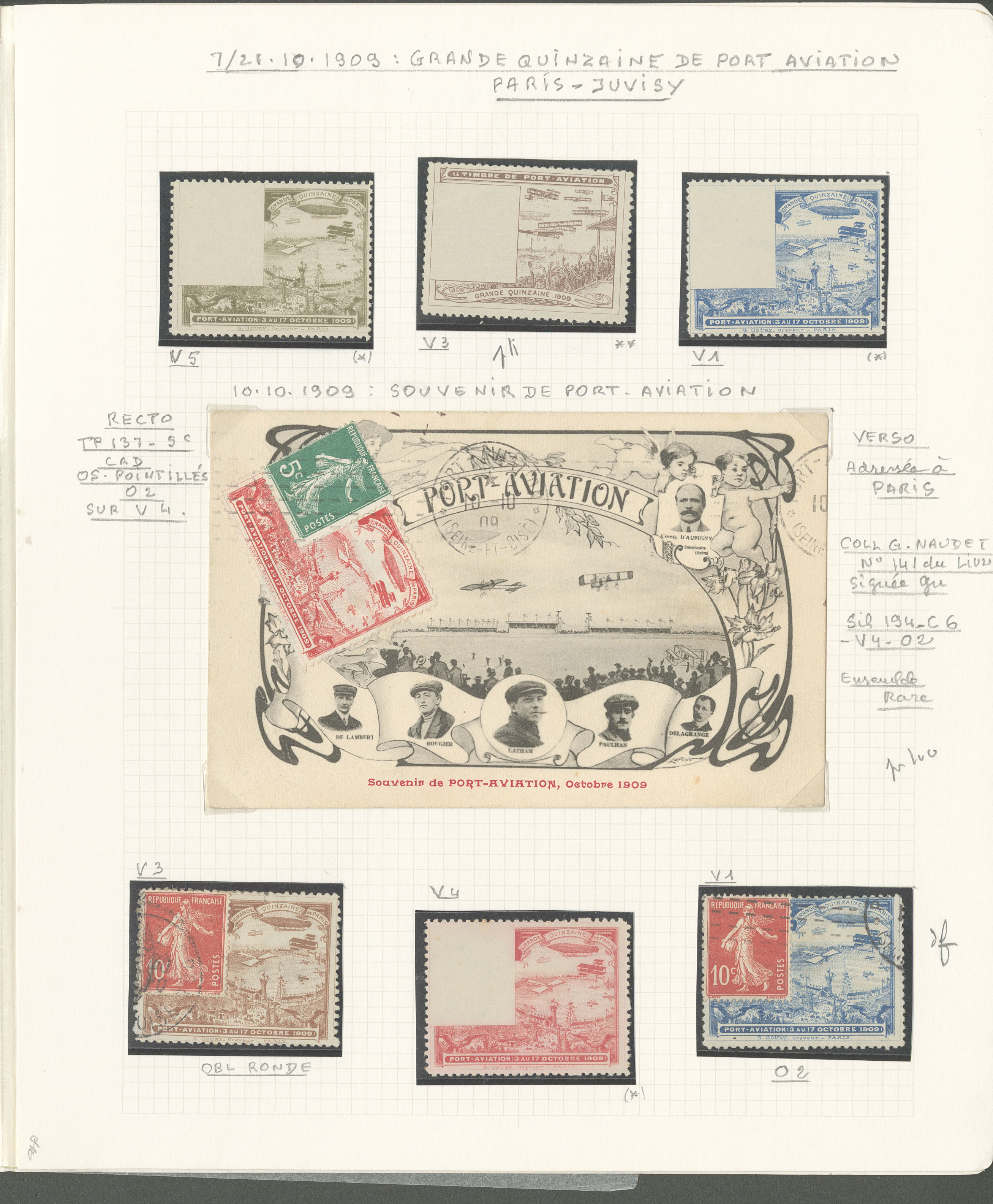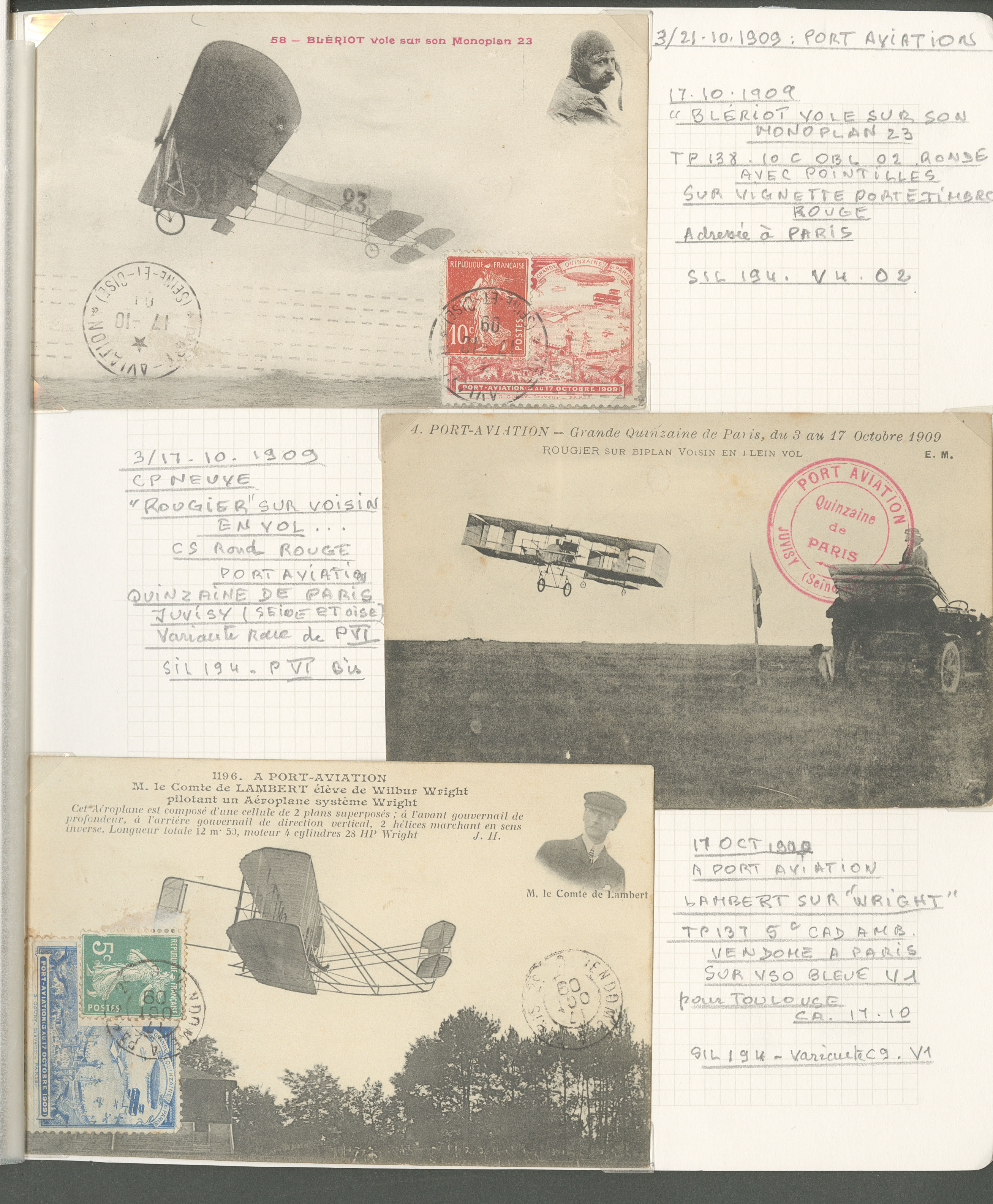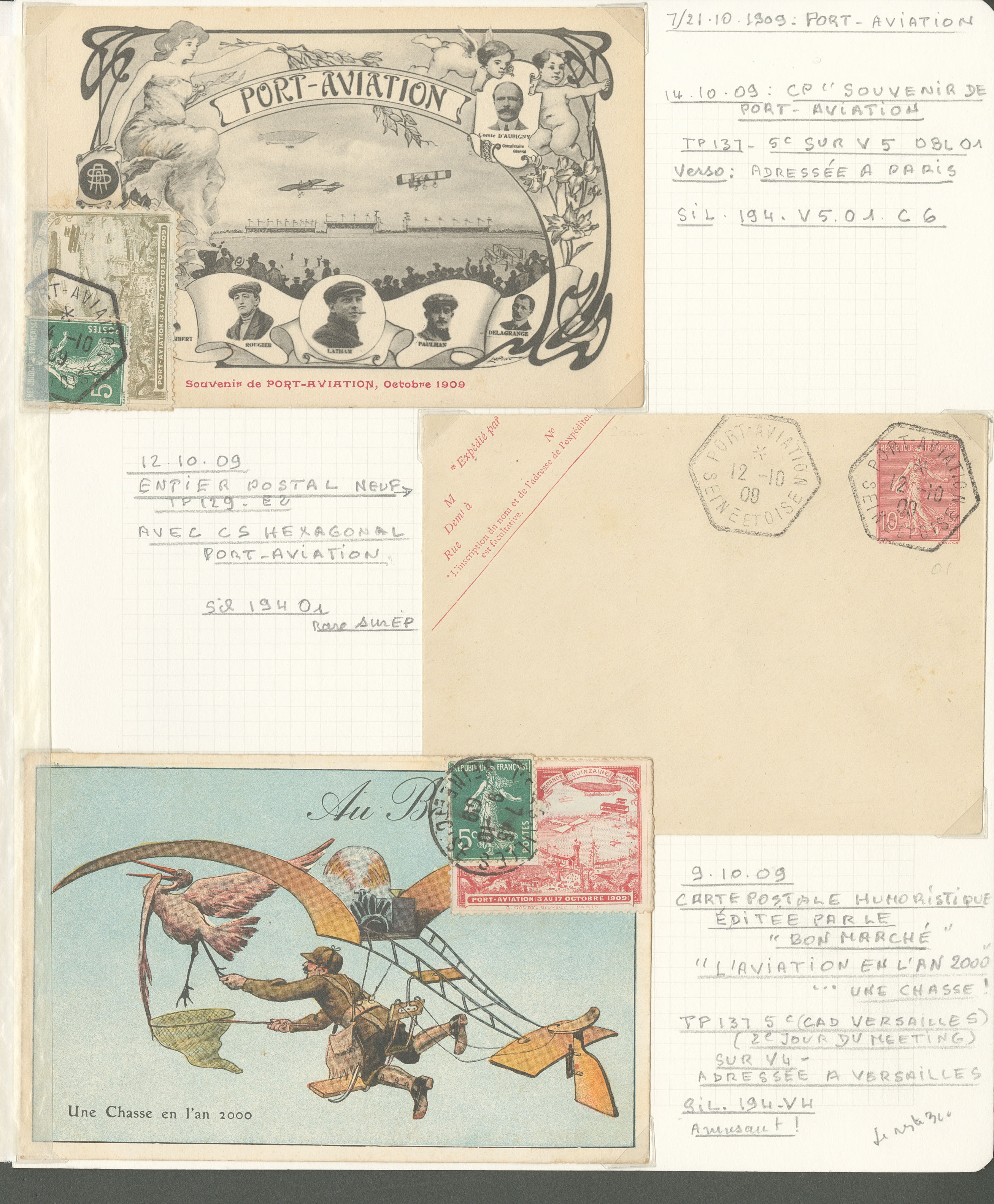 2782 c imagePOSTE AERIENNE. MEETINGS. Lettre. Port-Aviation 3-17 oct 1909. Sil. 194, 7 VS et 14 CP Oct 1909, cachets et vues divers. - TB (Image) (Image2) (Image3) (All Images)