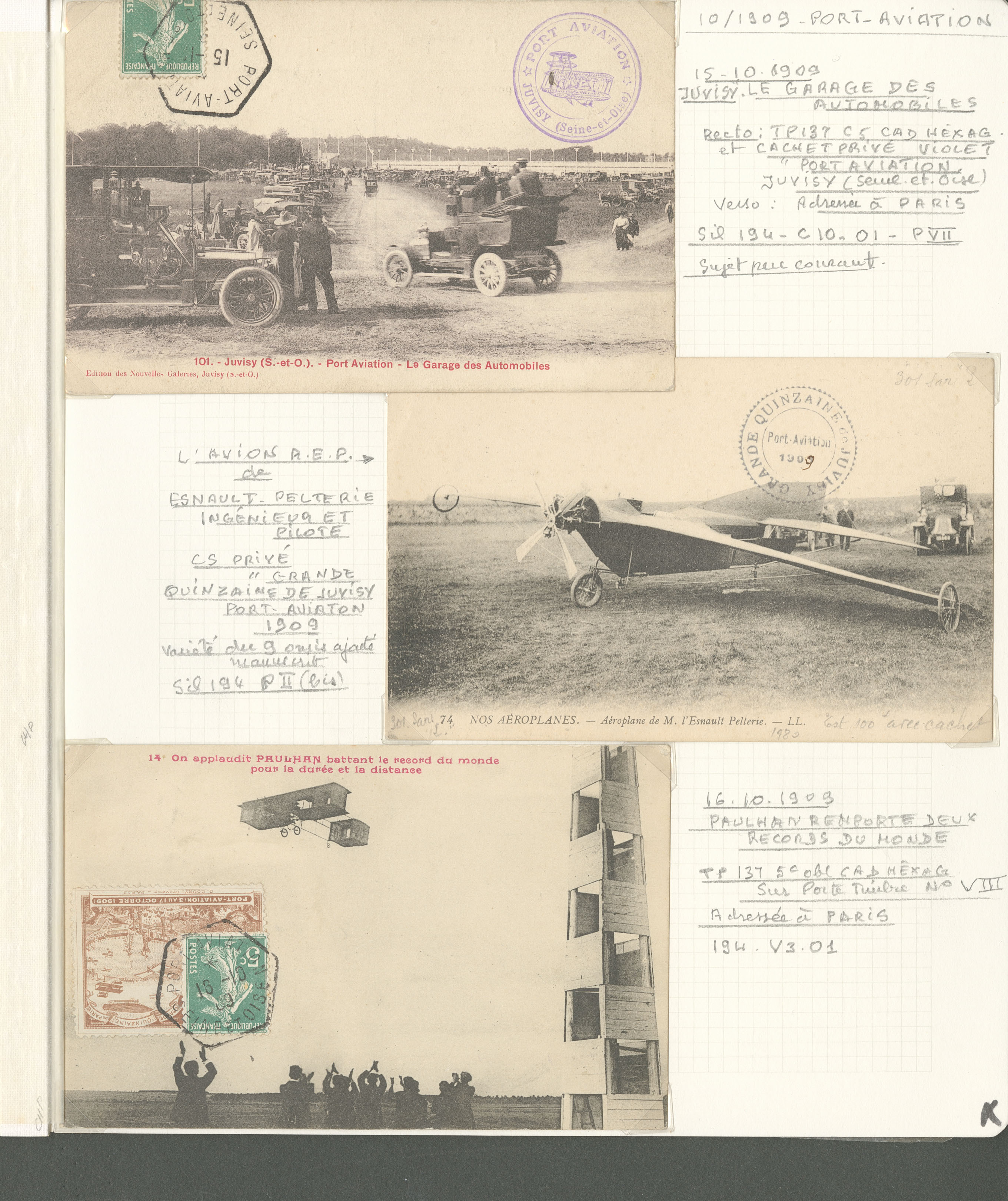 2779 c imagePOSTE AERIENNE. MEETINGS. Lettre. Port-Aviation 3-17 oct 1909. 26 CP majorité voyagée, 1 enveloppe et 1 programme officiel, dont VS, CS "Port-Aviation Juvisy", affts et obl divers. - TB (Image) (Image2) (Image3) (Image4) (Image5) (All Images)