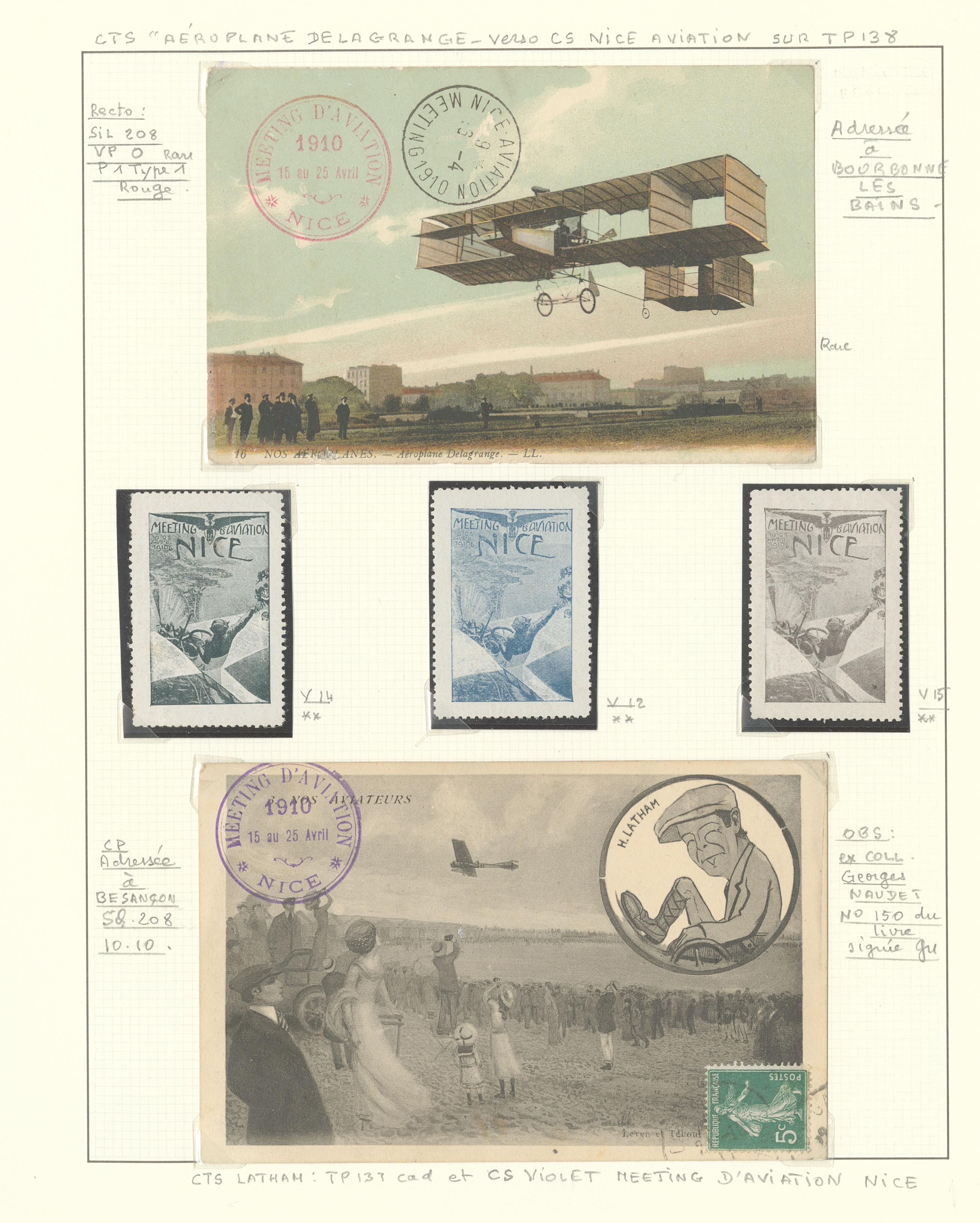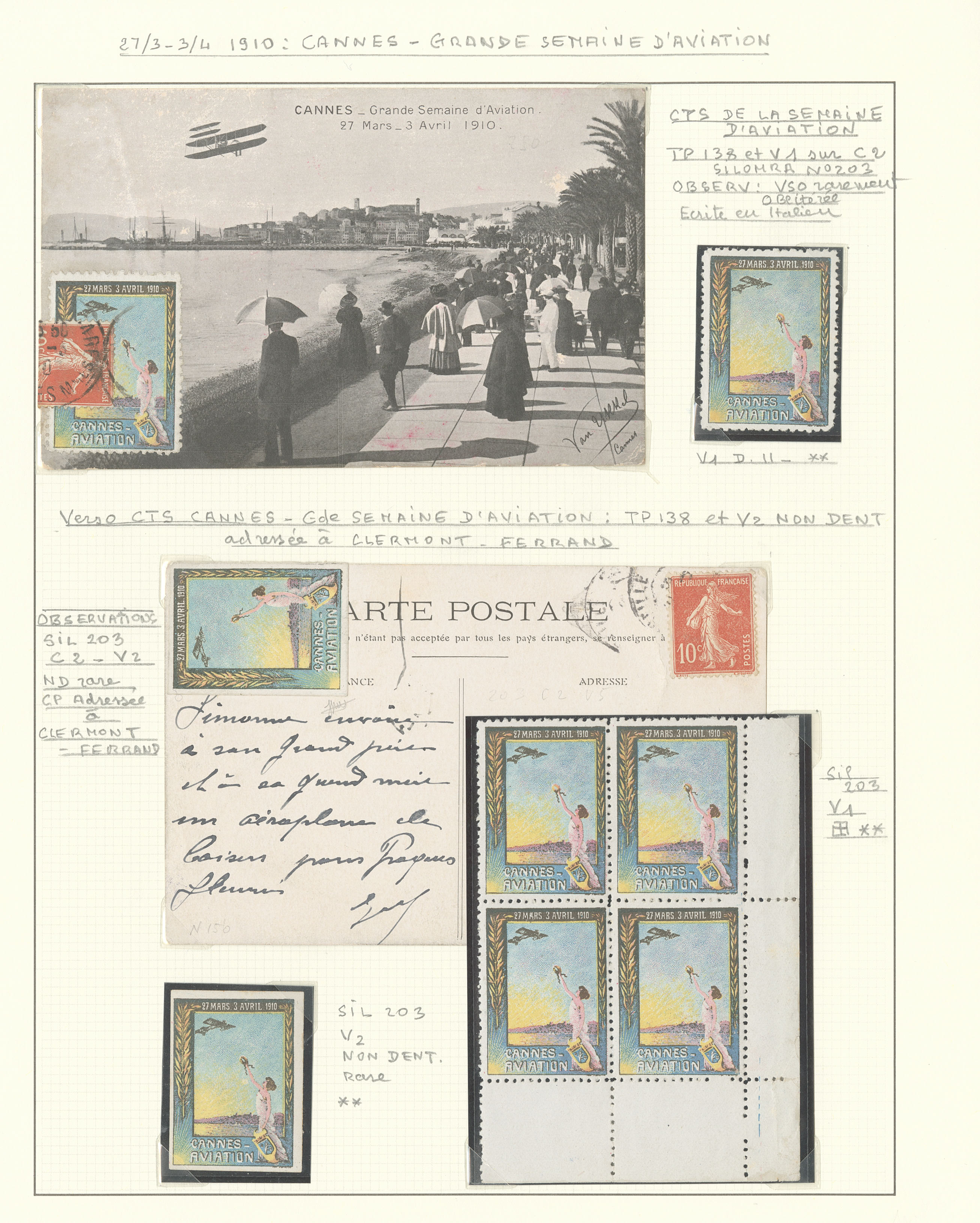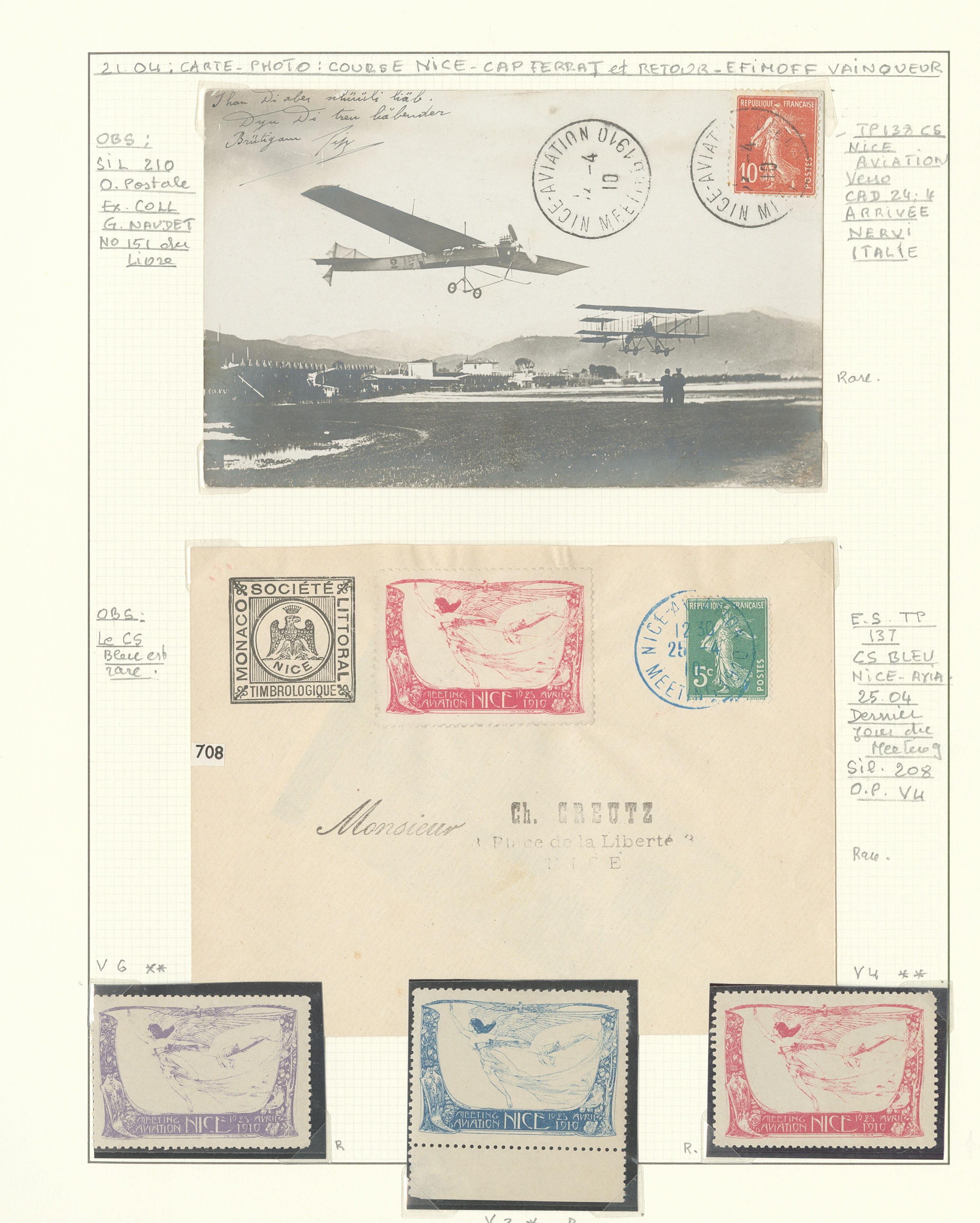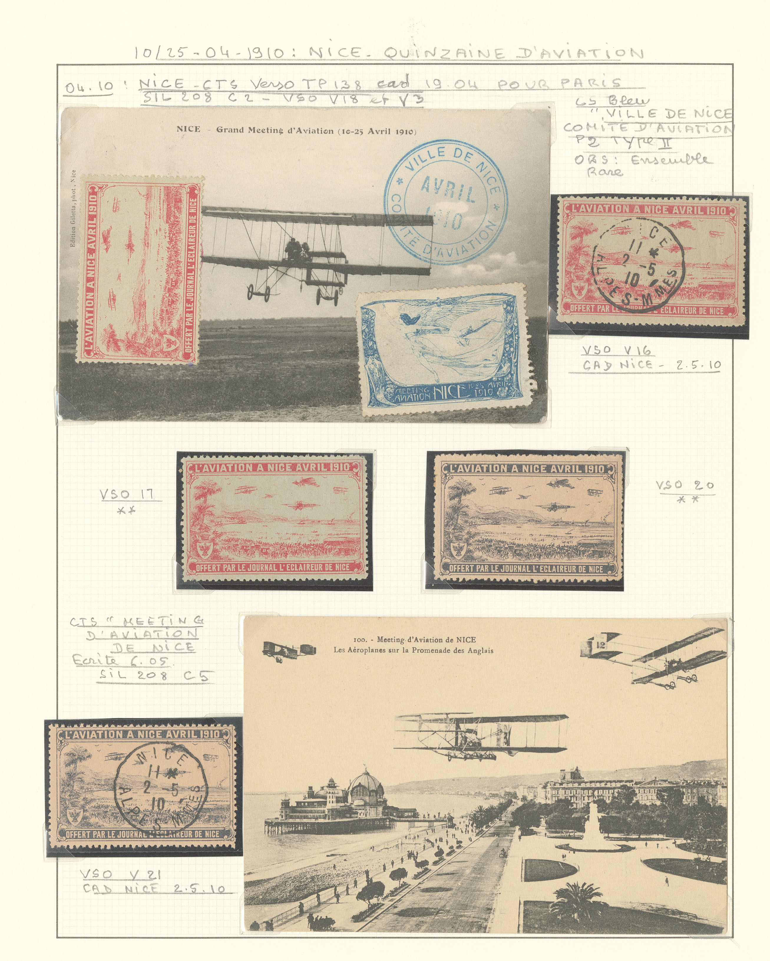 2784 c imagePOSTE AERIENNE. MEETINGS. Lettre. Nice Quinzaine d'Aviation 10-21 avril 1910, 5 CP, 1 enveloppe et 13 VS, cachets divers. - TB (Image) (Image2) (Image3) (All Images)