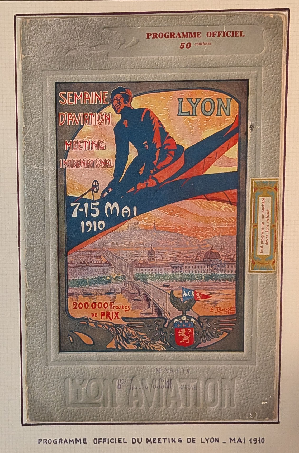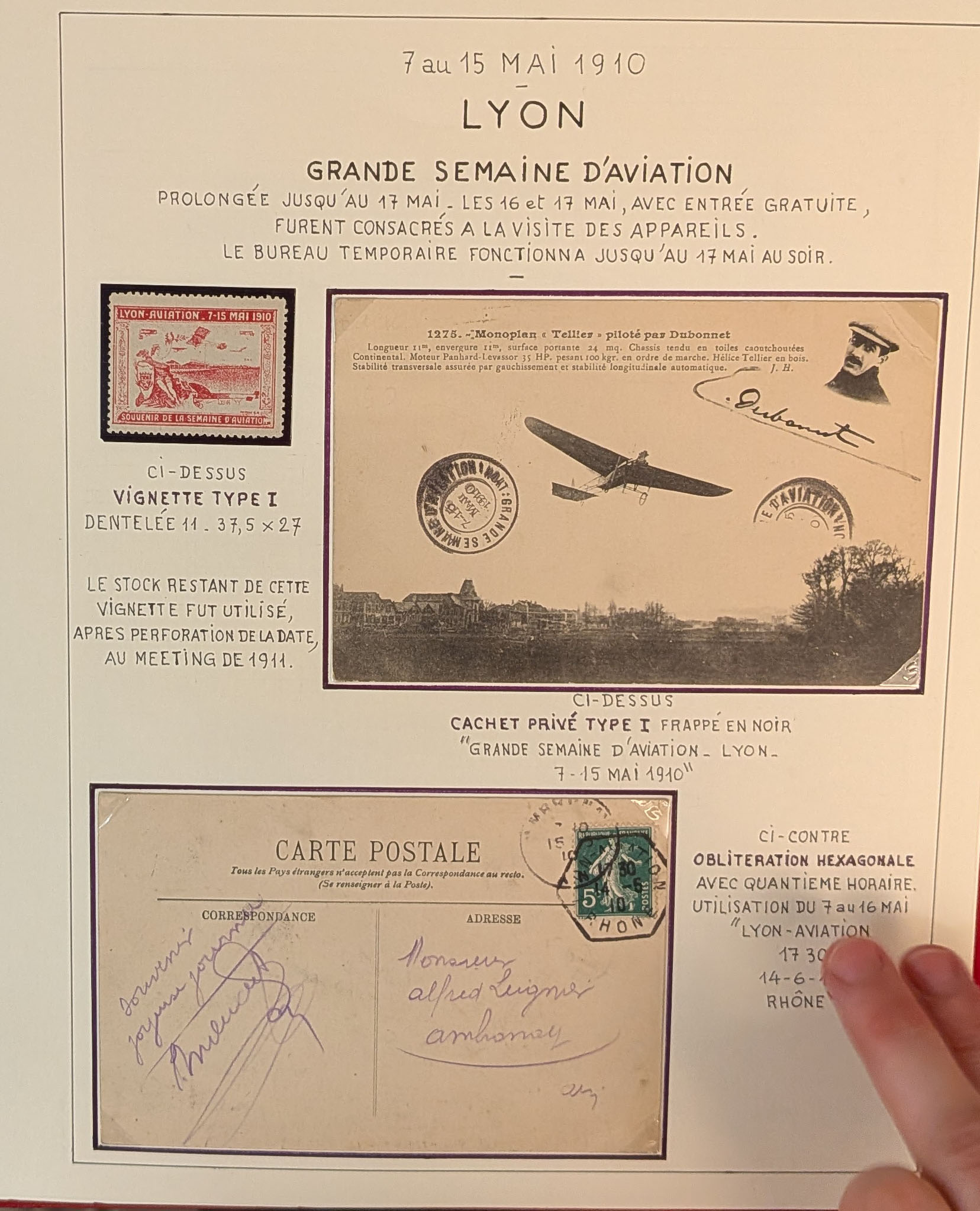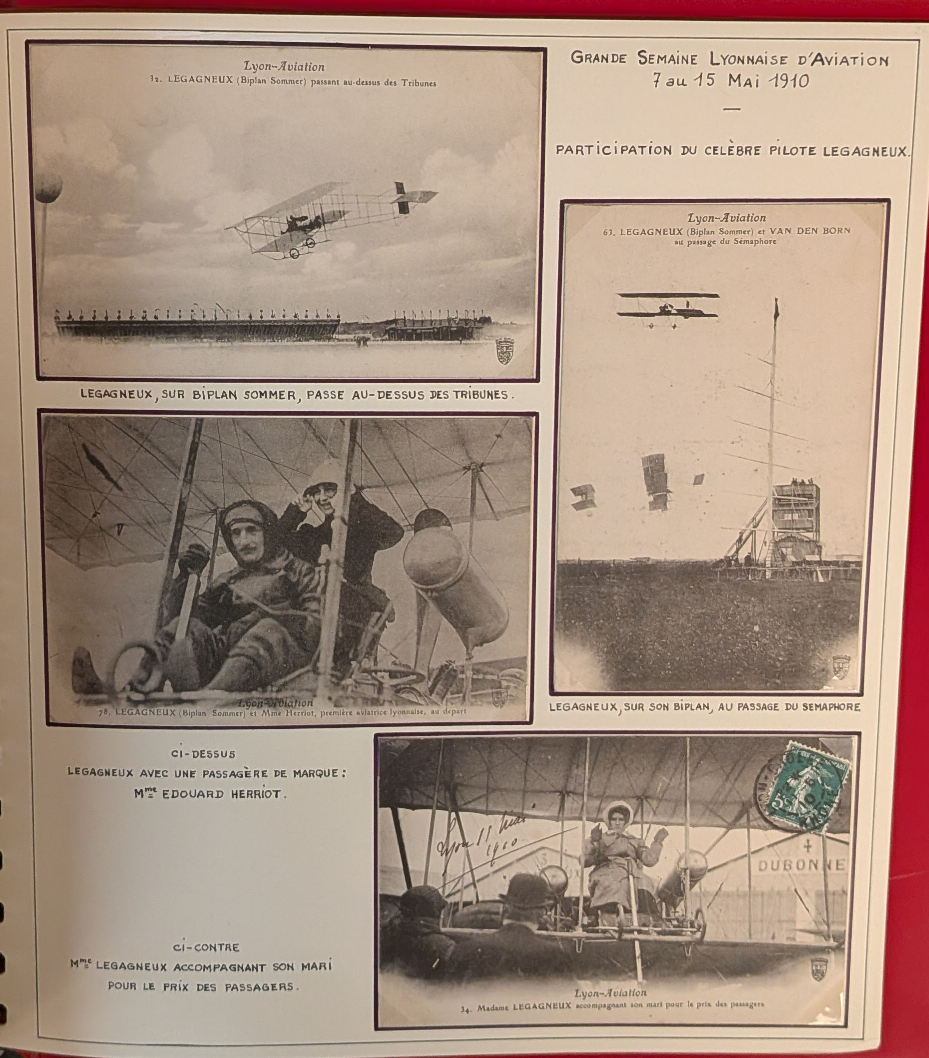 2785 c imagePOSTE AERIENNE. MEETINGS. Lettre. Semaine de l'aviation de Lyon 1910. Un programme, carte de presse, billet d'entrée et 38 CP, neuves et voyagées, cachet, obl et VS diverses, en 1 album. - TB (Image) (Image2) (Image3) (Image4) (Image5) (All Images)