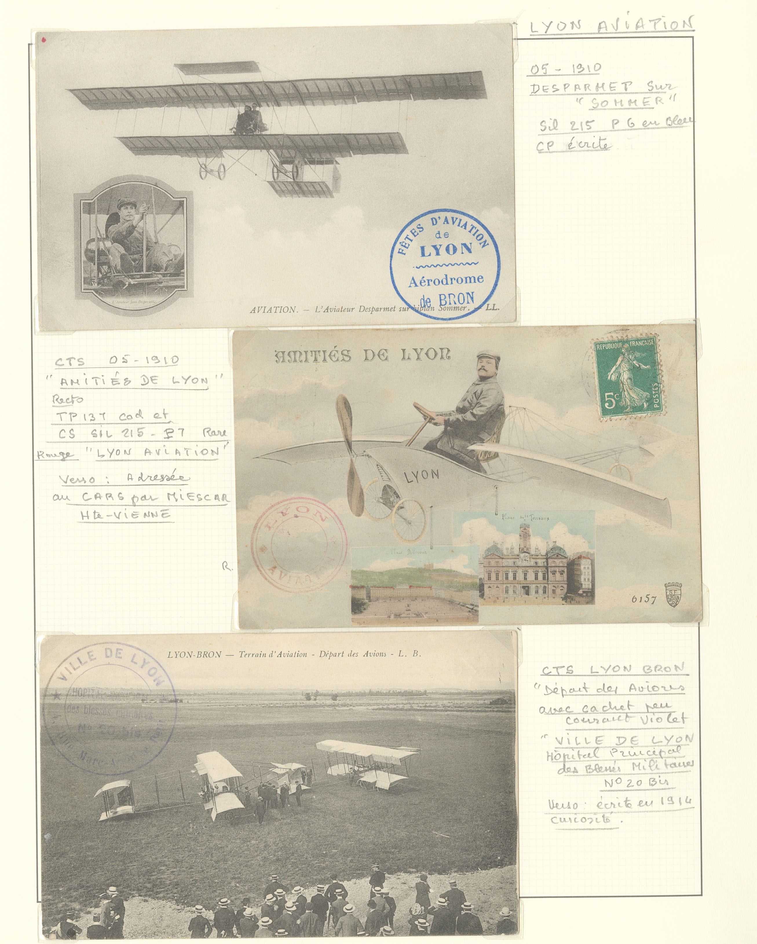 2786 c imagePOSTE AERIENNE. MEETINGS. Lettre. Semaine de l'aviation de Lyon 1910. Sil. 215, 9 CP et une VS, cachets et vues divers. - TB (Image) (Image2) (Image3) (All Images)