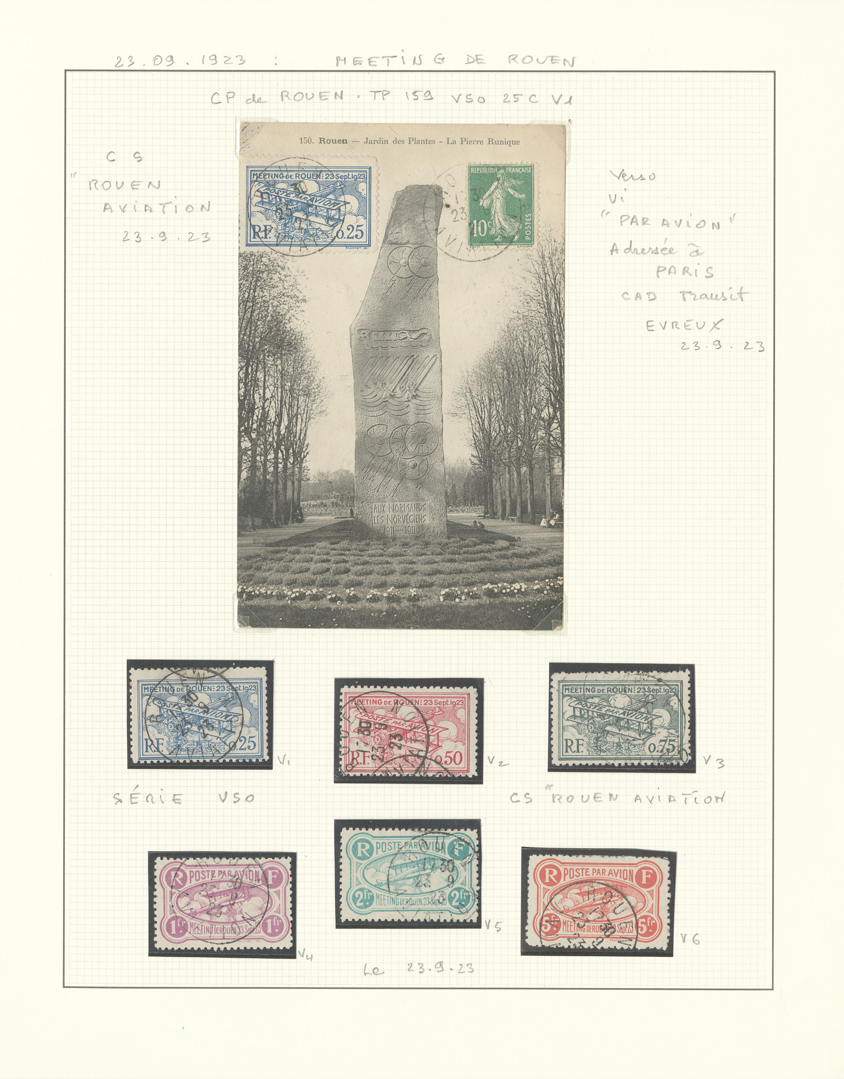 2828 nh imagePOSTE AERIENNE. MEETINGS. ** Rouen, 23 Sept 1923. Sil. 817. collection de VS dont qqs obl, une enveloppe et une CP. - TB (Image) (Image2) (All Images)
