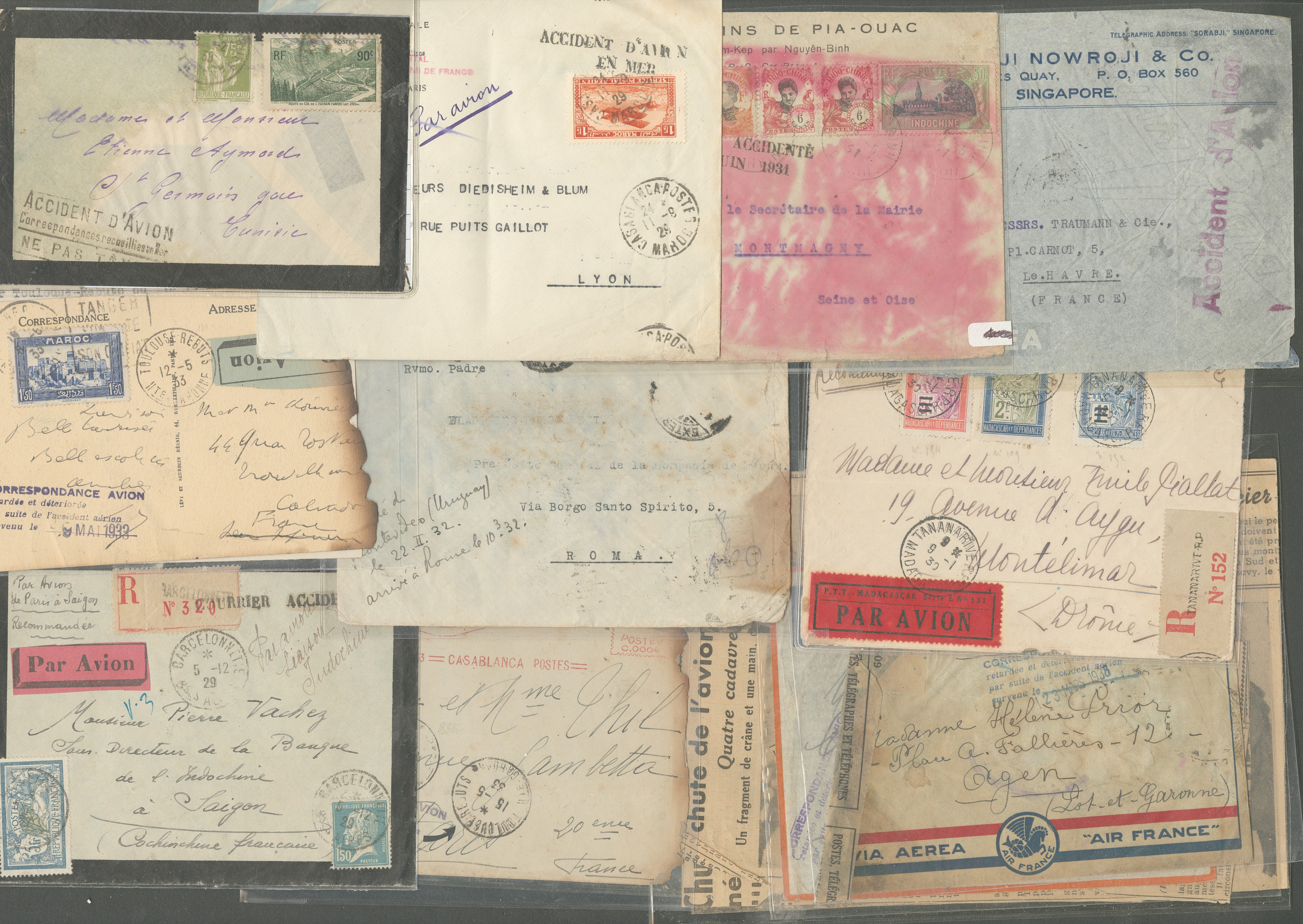 2837 c imagePOSTE AERIENNE. MEETINGS. Lettre. Lot. Accidentés. 1929-1938,, 24 enveloppes, griffes spéciales, affts, obl et destinations divers. - TB (Image) (Image2) (Image3) (All Images)