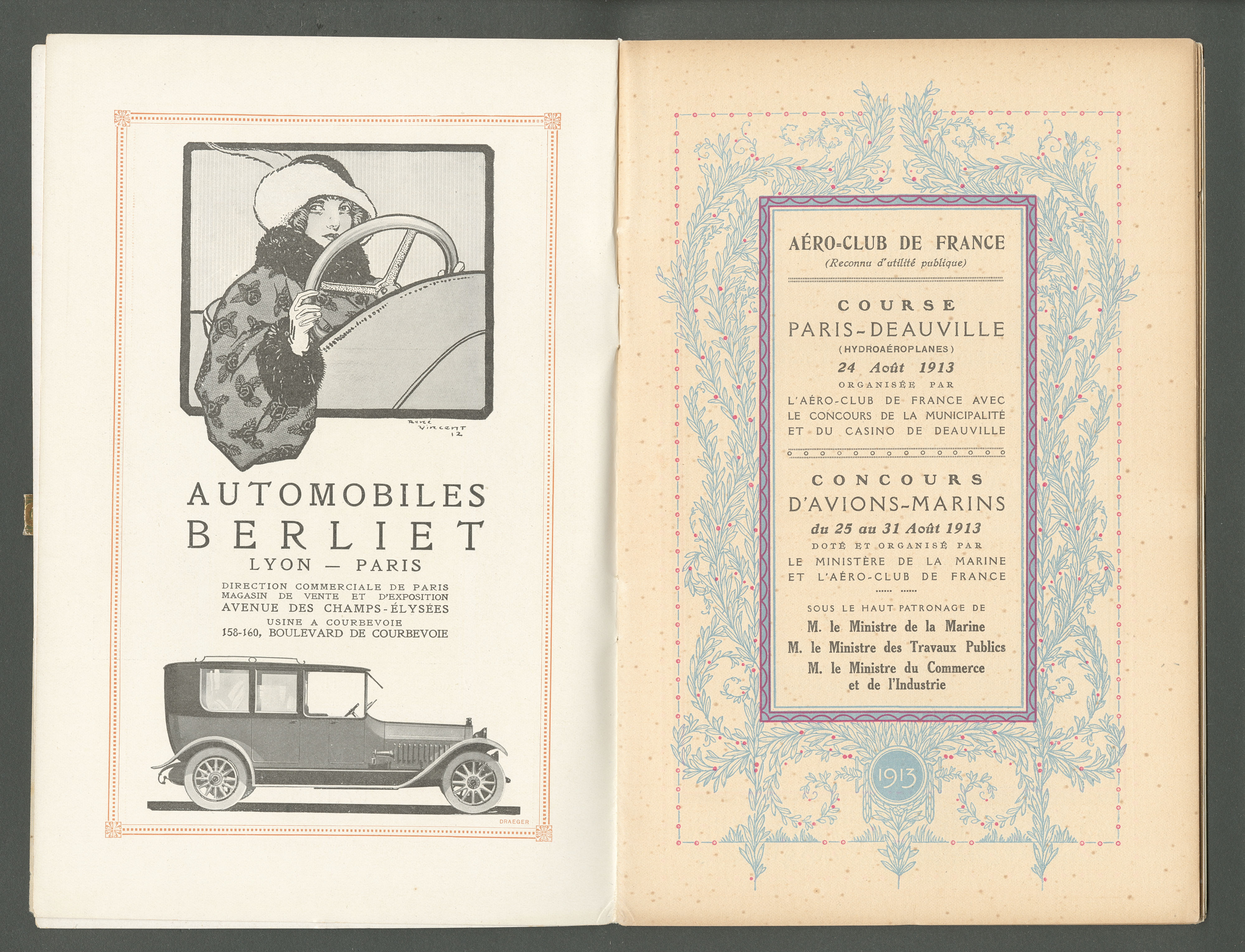 2839 c imagePOSTE AERIENNE. PROGRAMMES OFFICIELS. Lettre. Concours d'avions-marins Trouville-Deauville 1913, complète avec attache de fermeture dorée. - TB (Image) (Image2) (All Images)