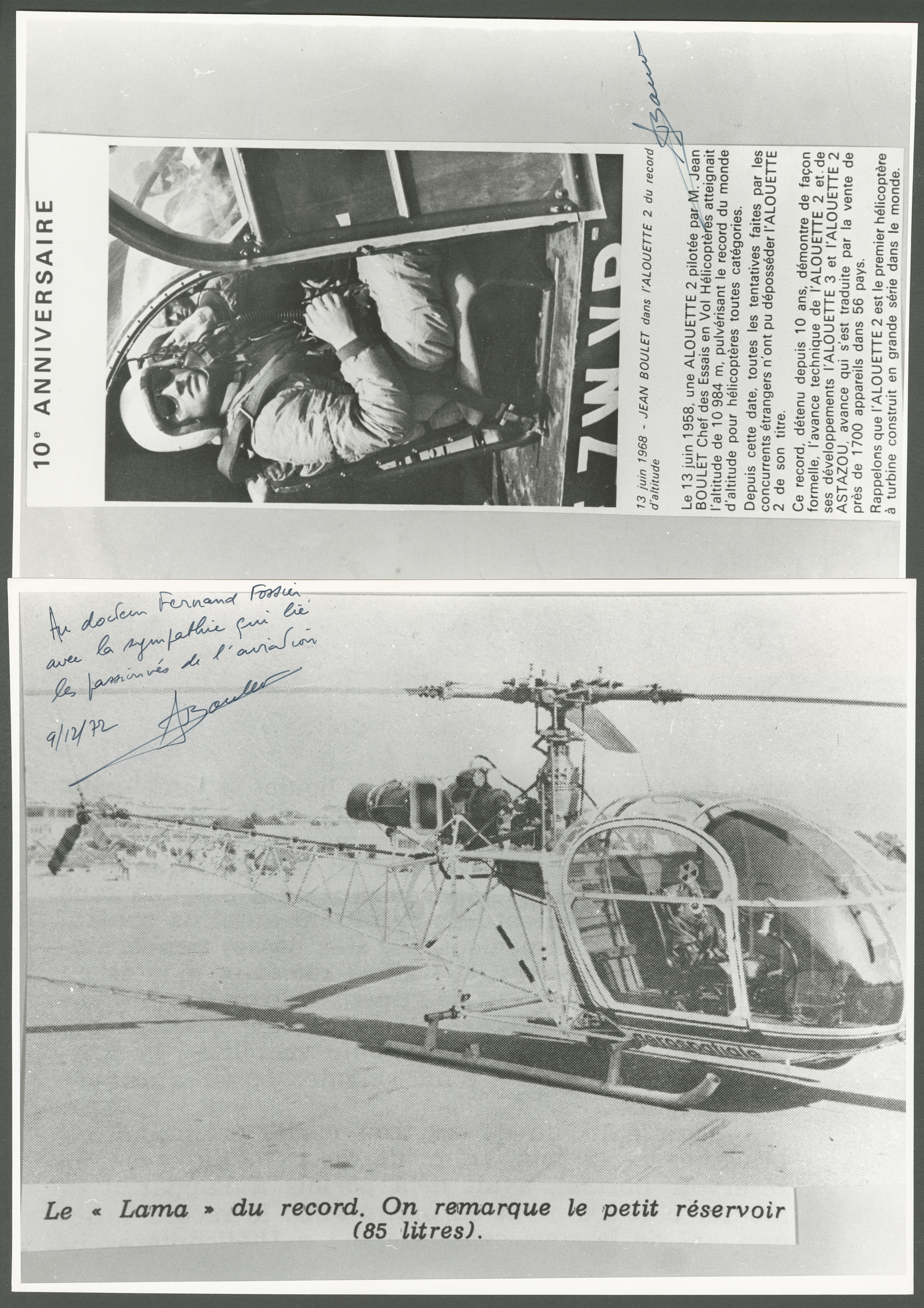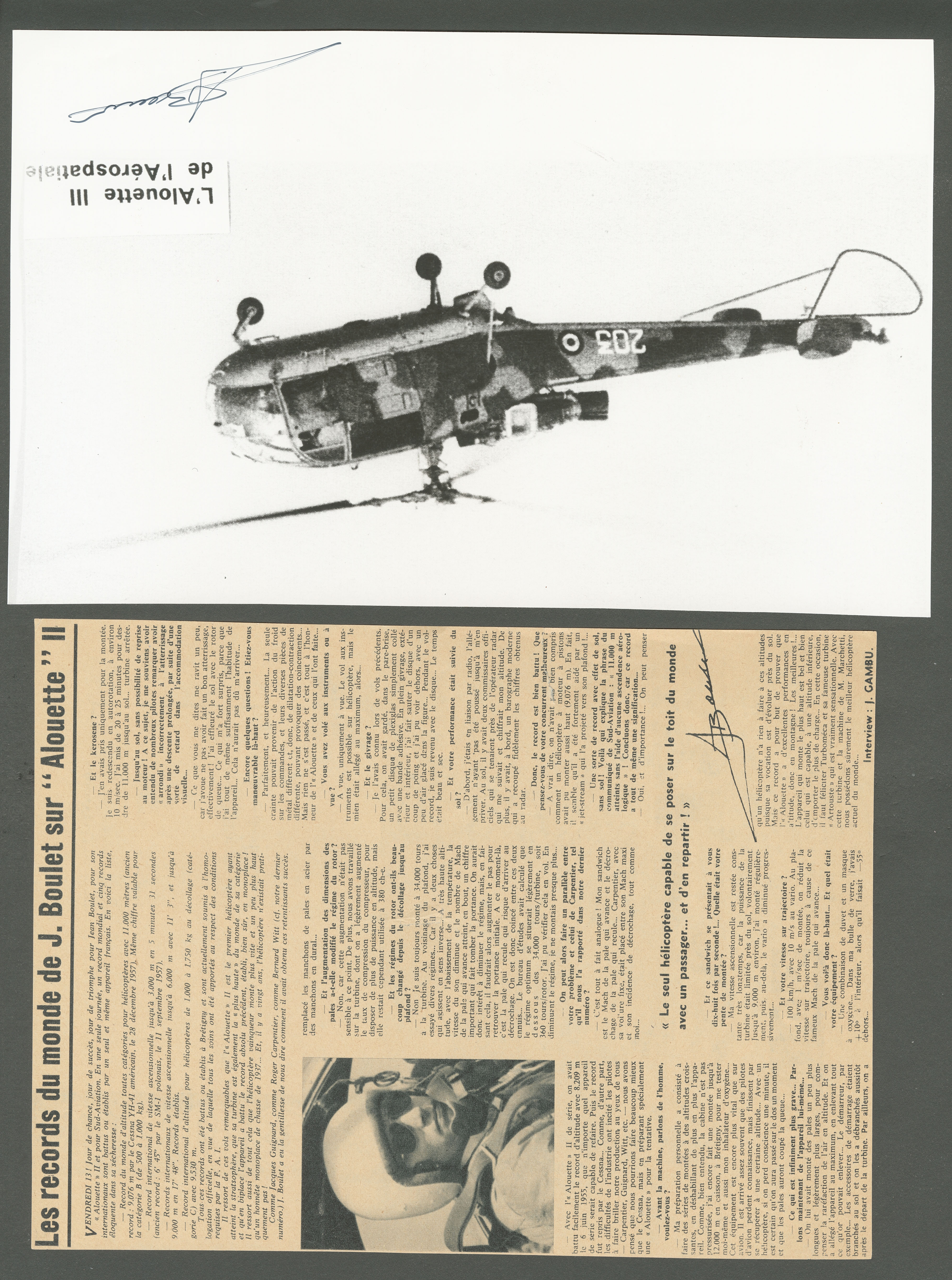 2847 c imagePOSTE AERIENNE. AVIATEURS. Lettre. Jean BOULET, ingénieur pilote hélicoptères. 5 repros photo 29x21cm, dédicacées. - TB (Image) (Image2) (Image3) (All Images)
