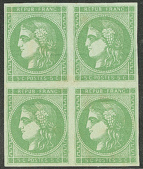 42B, vert-jaune, bloc de quatre (un ex **). - TB (cote Yvert : 1900€) (Image)