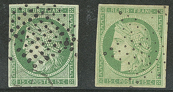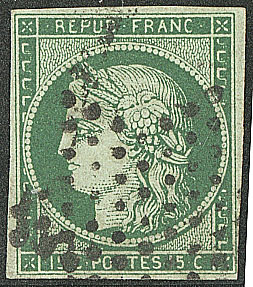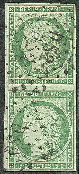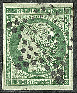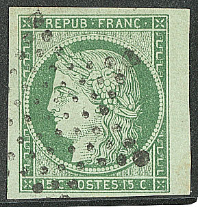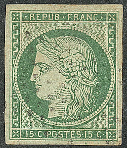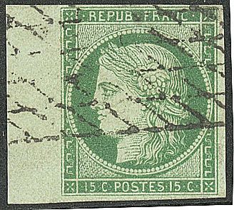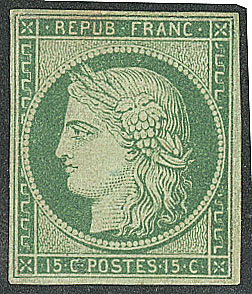 vert foncé, nuance soutenue, restauration esthétique en marge de droite au ras du filet mais superbe d'aspect. - R (cote Yvert : 31000€) (Image) (Image2)