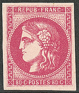 49d, groseille, gomme légèrement altérée mais très frais et TB. - R (cote Yvert : 3000€) (Image)