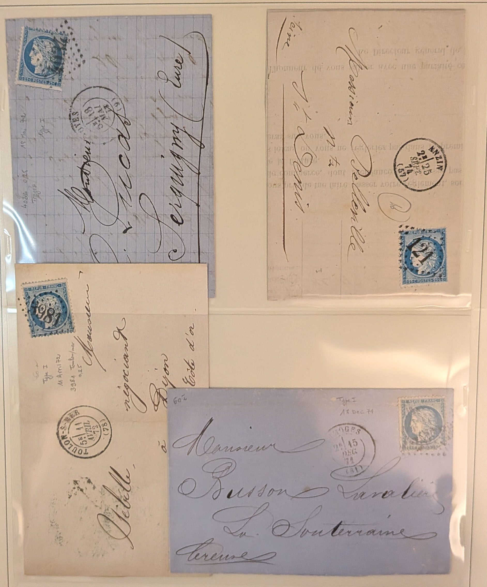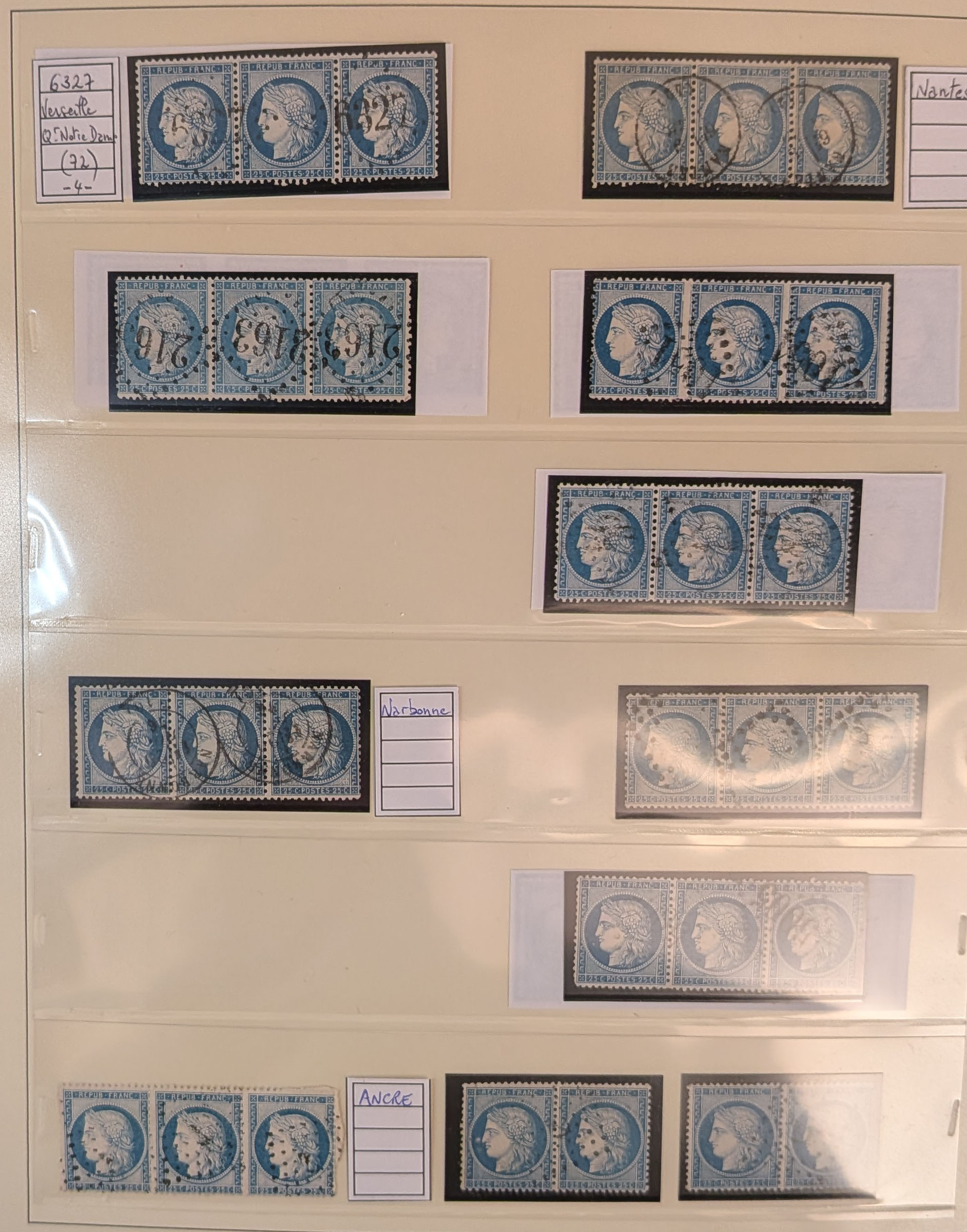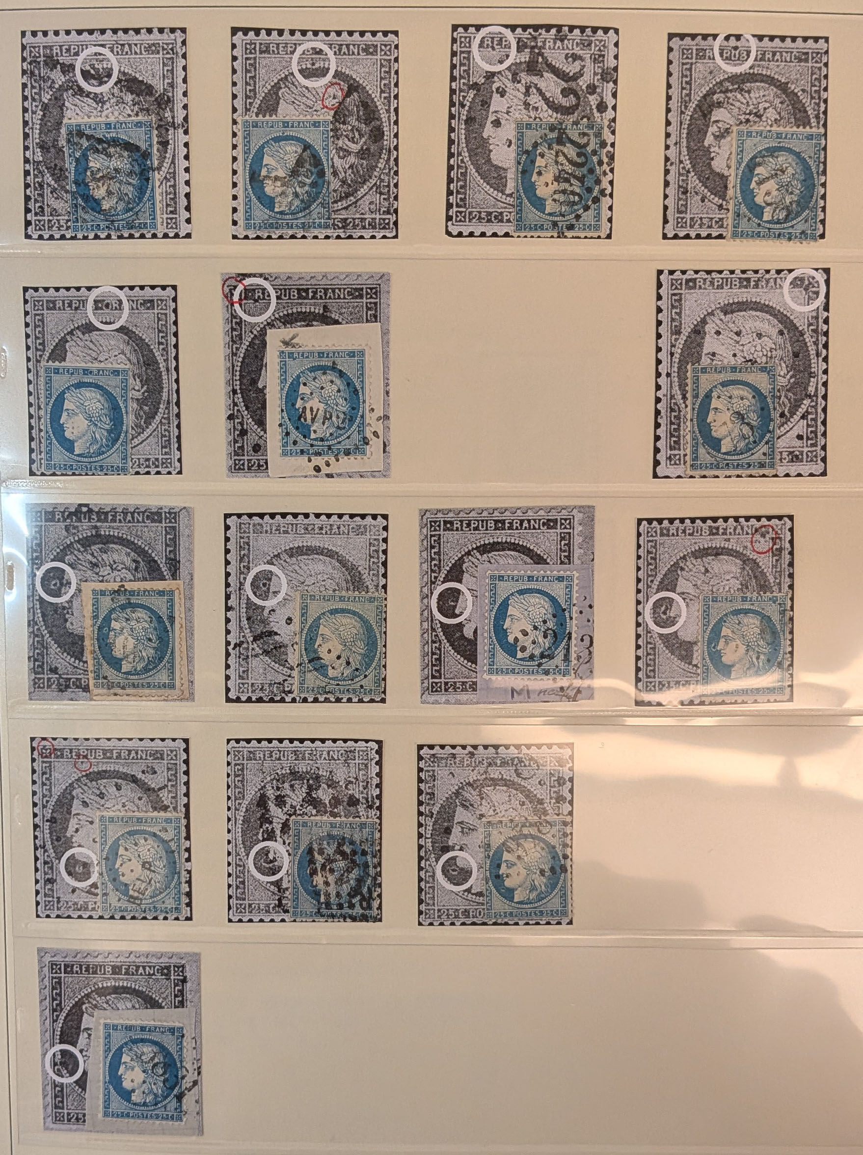 Empire lauré. 4c bleu pelure, 30c (6 dont paire), papiers, nuances et impressions divers. - TB (Image)