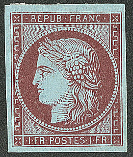Cérès 1849. 1f carmin sur bleu. - TB (cote Yvert : 1800€) (Image)