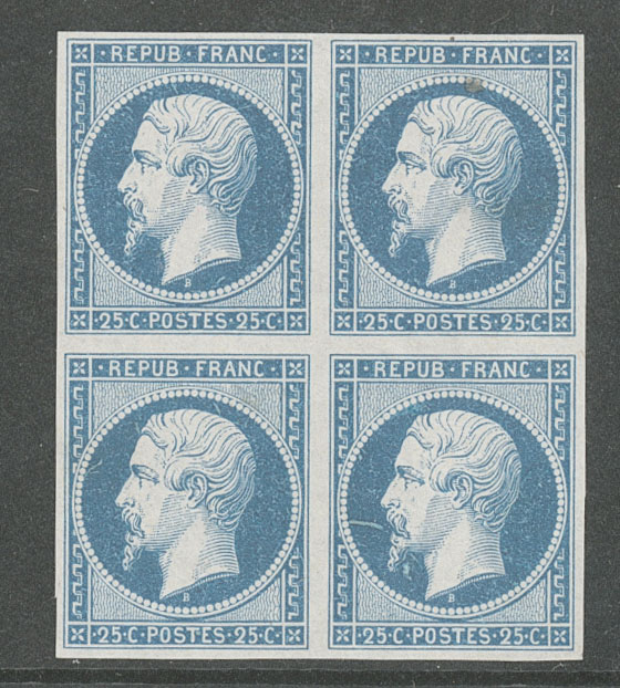 Présidence. 25c bleu, papier pelure, bloc de quatre. - TB (cote Yvert : 1200€) (Image)
