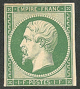 Empire. 1f vert, recto-verso, tangent au filet en bas, TB d'aspect (cote Yvert : 1200€) (Image)