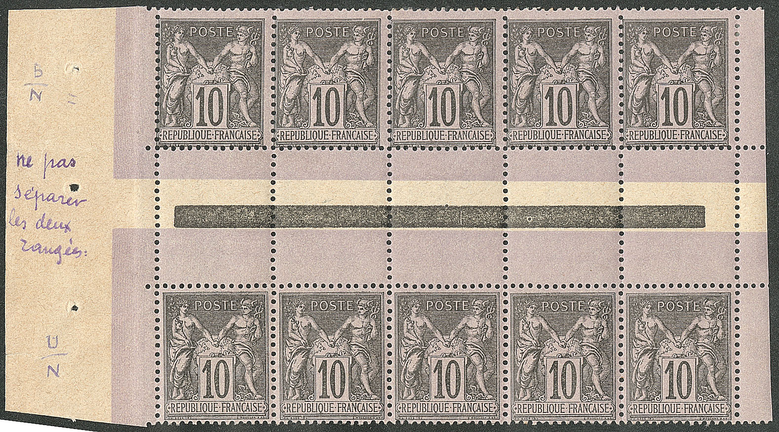 I et II se tenant. No 103b, 5 paires verticales se tenant formant bloc de dix interpanneaux double bdf (un ex *). - TB (cote Yvert : 3500€) (Image)