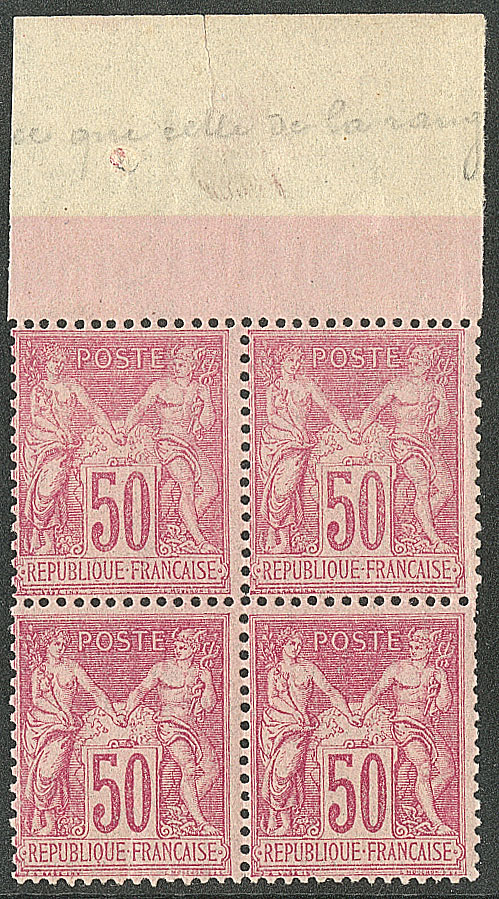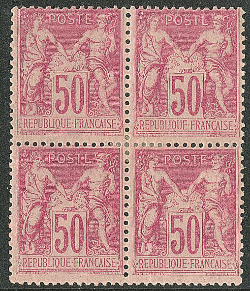 104, rose, bloc de quatre bdf (un ex *, un ex fente et un ex pli). - TB (cote Yvert : 2200€) (Image)