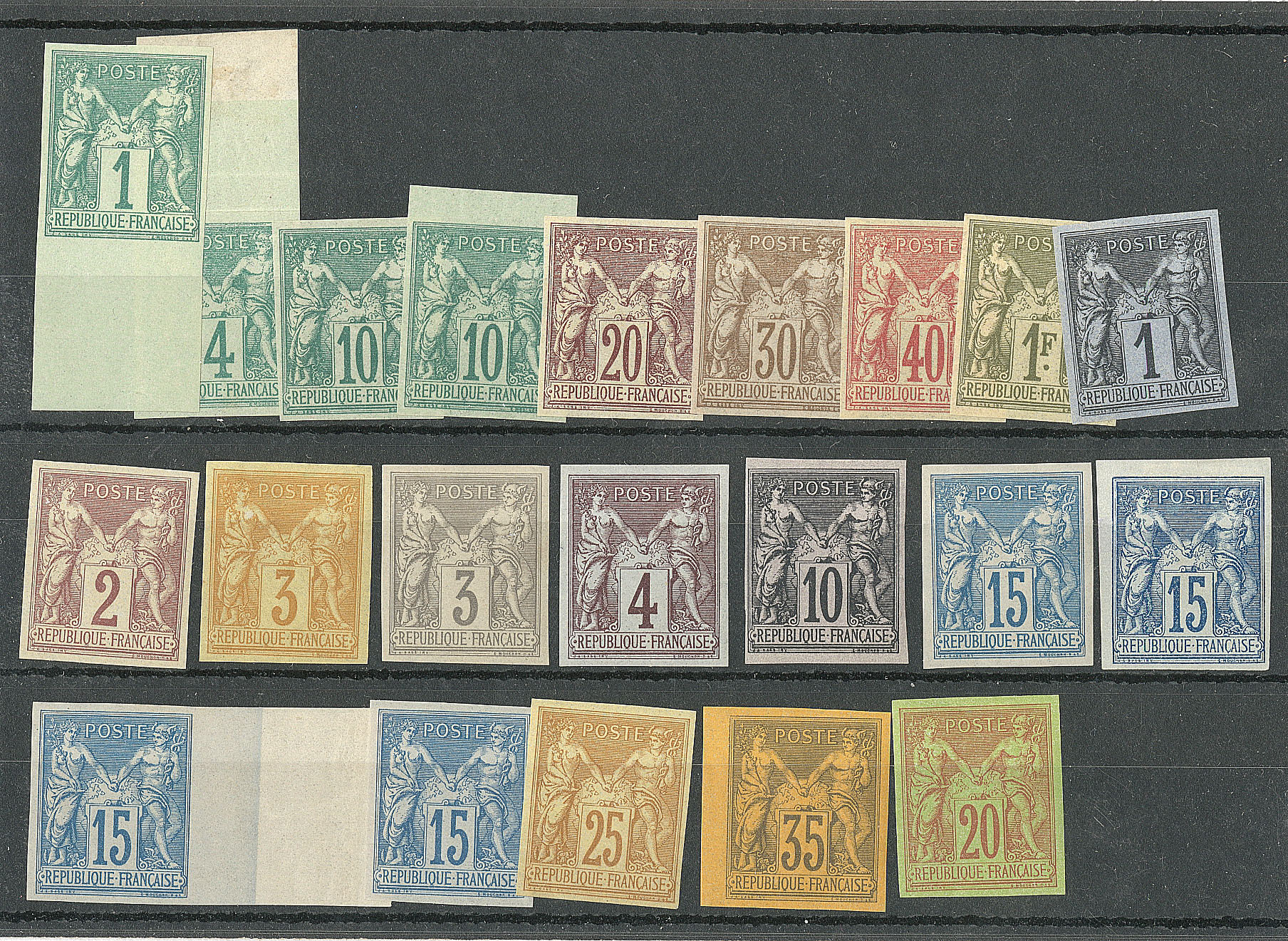 dentelé. Nos 61a, 63a, 65a(2), 67a, 69a, 70a, 72a, 83d, 85b/89b, 90b(4)92b, 93b, 96b, des ex *. - TB (cote Yvert : 6475€) (Image)
