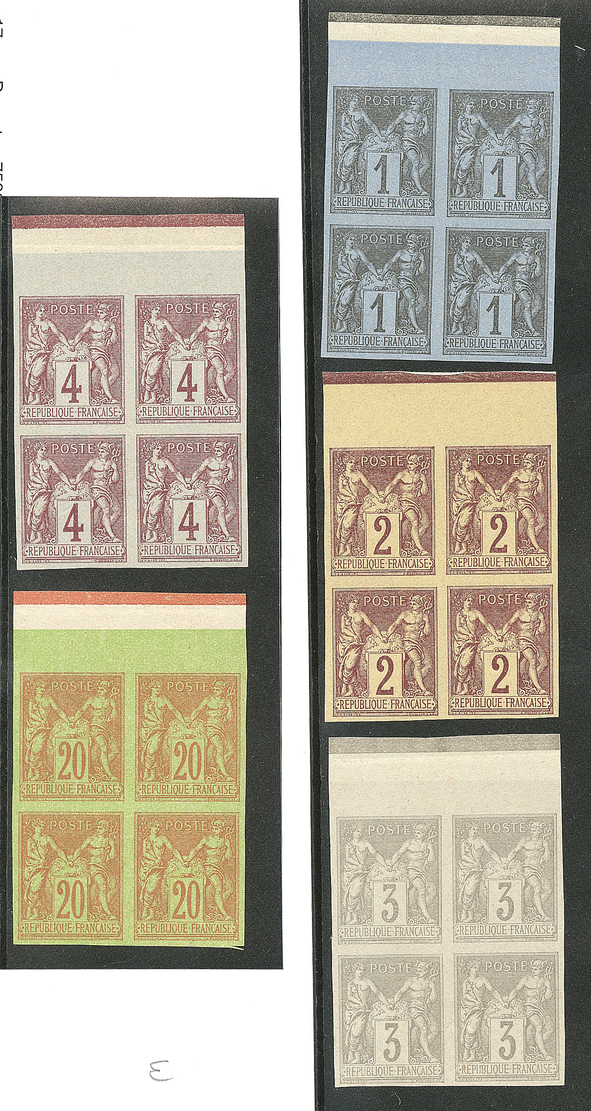 Granet. Nos 83f, 85d, 87e, 88d, 96e, tous en bloc de quatre bdf. - TB (cote Yvert : 2200€) (Image)