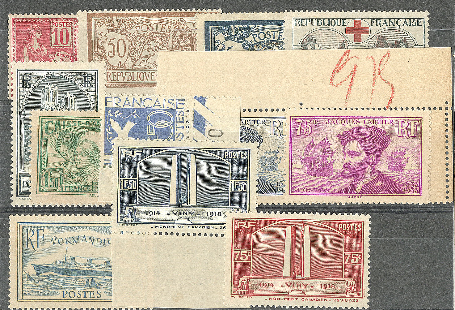 Mouchon. Nos 112, 120 (pli), 123 (froissure), 156, 259, 261, 294, 296, 297, 300, 316, 317. - TB (cote Yvert : 2355€) (Image)