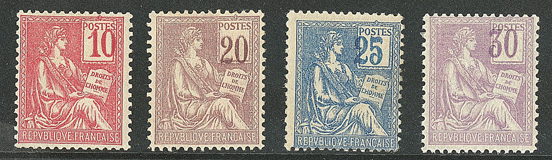 *Mouchon. Nos 112a pli, 113d (*), 114a (gomme altérée), 115a. - TB (cote Yvert : 1595€) (Image)