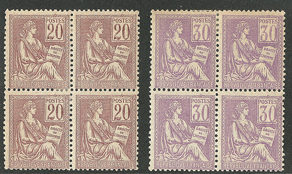 *Mouchon. Nos 113, 115, tous deux en bloc de quatre. - TB (cote Yvert : 600€) (Image)