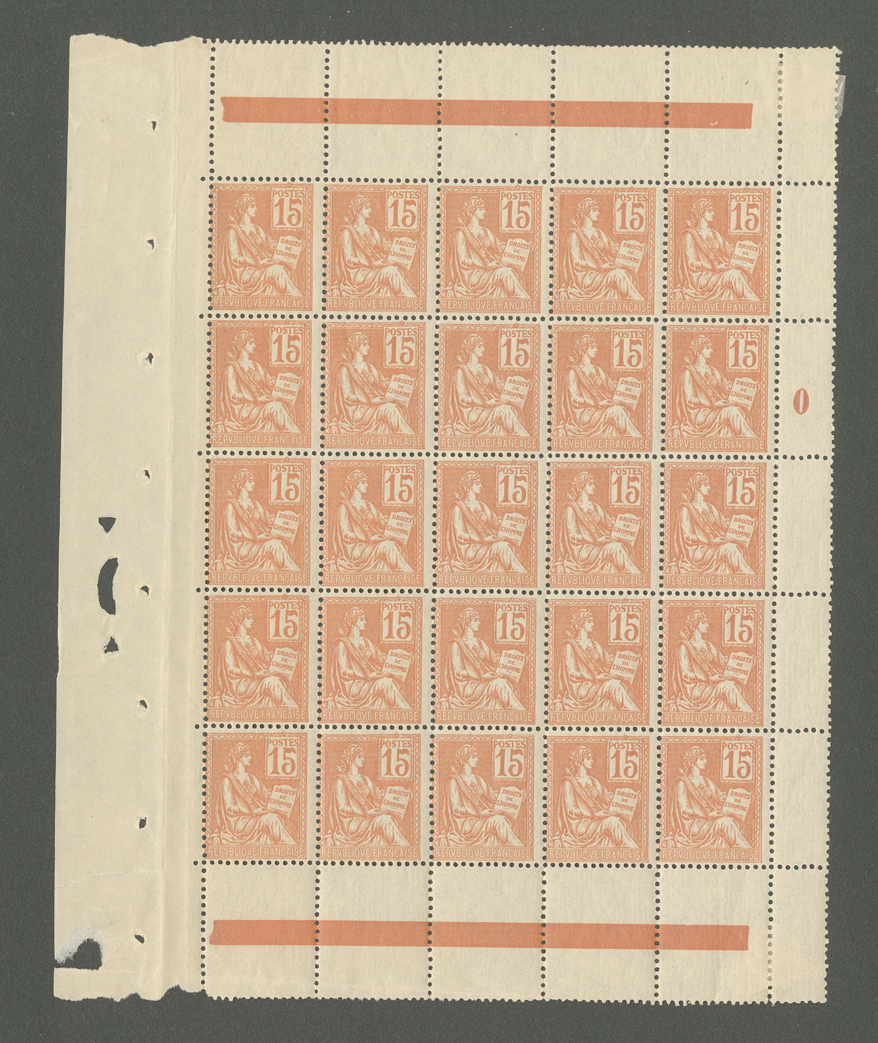 Mouchon. No 117, panneau de 25ex encadré, mill. 0. - TB (cote Yvert : 875€) (Image)