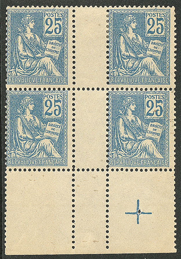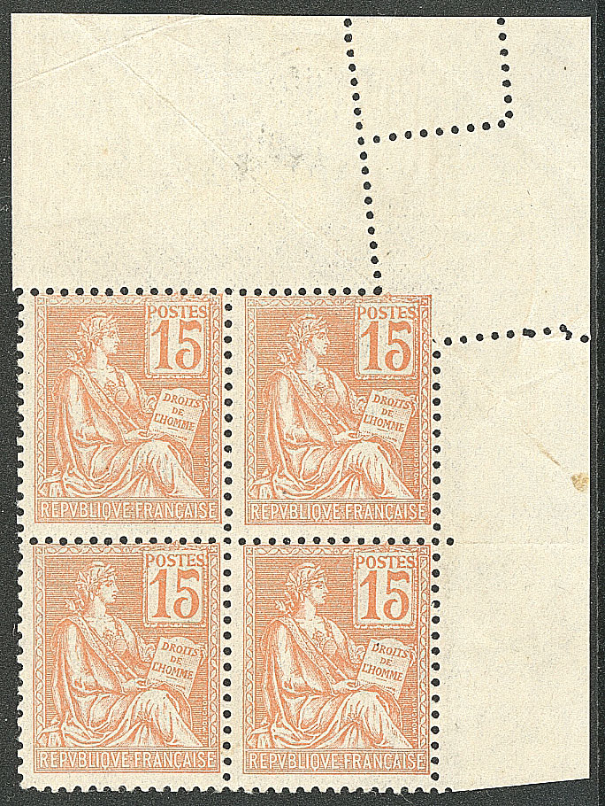 Mouchon. Piquage oblique. No 117j, un ex TAN dans un bloc de quatre cdf. - TB (cote Yvert : 370€) (Image)
