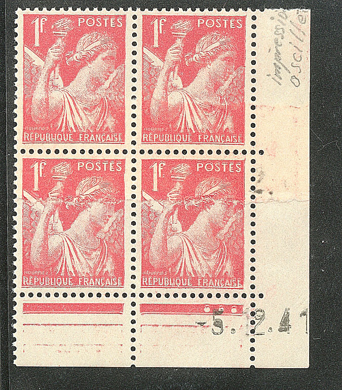 Impression sur raccord. No 433b, paire dans un bloc de quatre cd 5.12.41 dont les 4 ex présentent une impression doublée. - TB (Image)