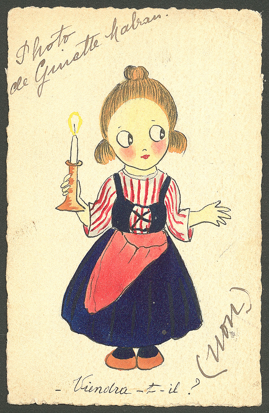 DIVERS.Lettre. Illustrations à la main. "Viendra-t-il ?". CP voyagée, aquarelle et plume. - TB (Image)