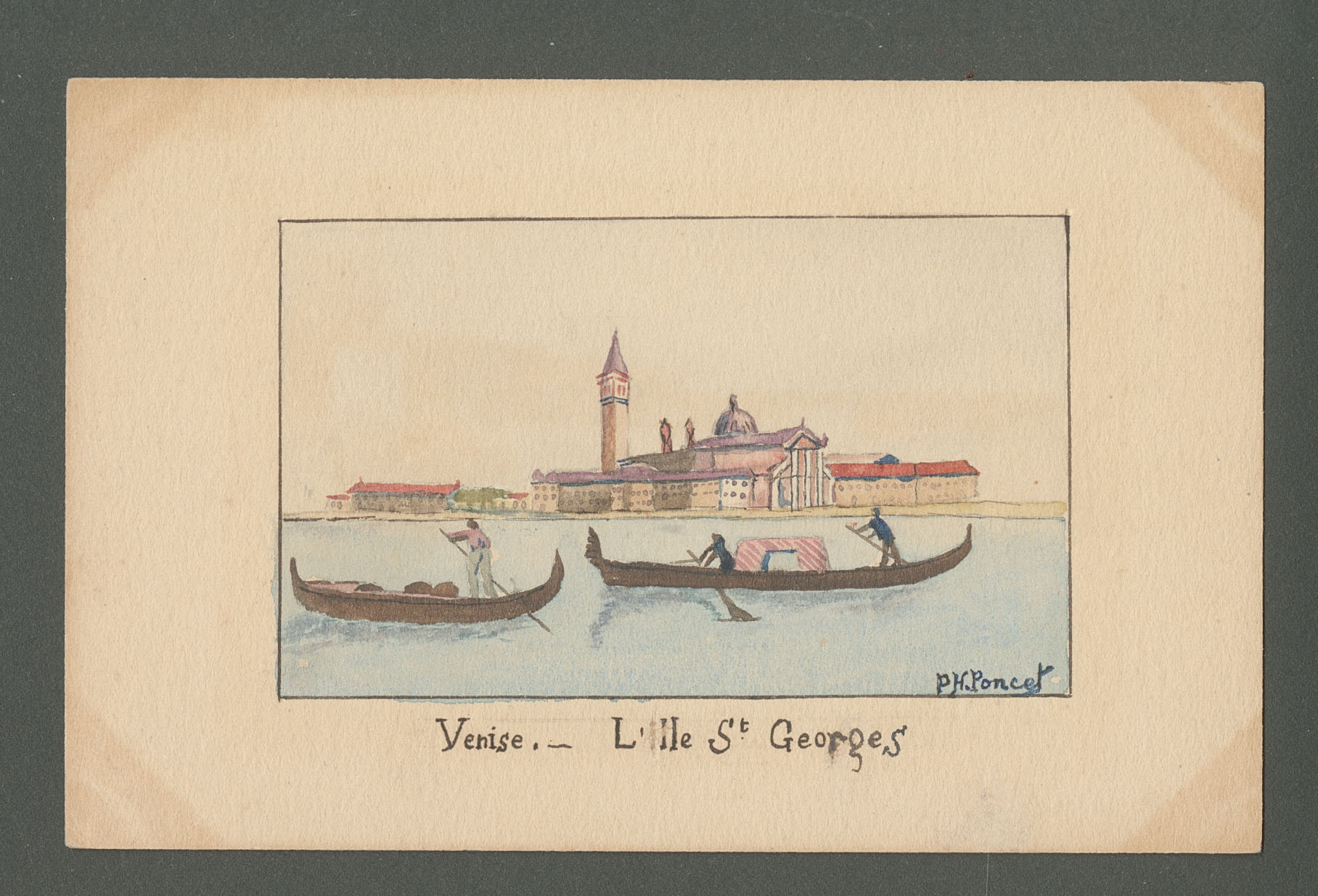 DIVERS.Lettre. Illustrations à la main. "Venise, l'Ile St Georges", CP voyagée, aquarelle et plume, signée "PH. Poncet". - TB (Image)