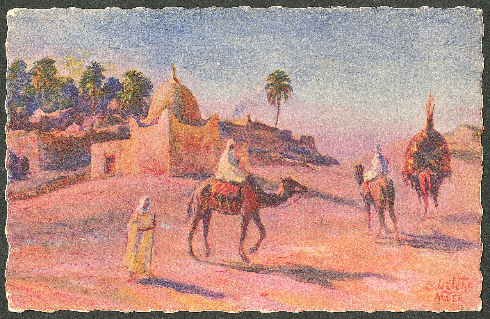 DIVERS.Lettre. Illustrations à la main. "Marabout à Touggouri (Constantine)". CP neuve, aquarelle et plume, signée "J. Ortega/ALGER". - TB (Image)