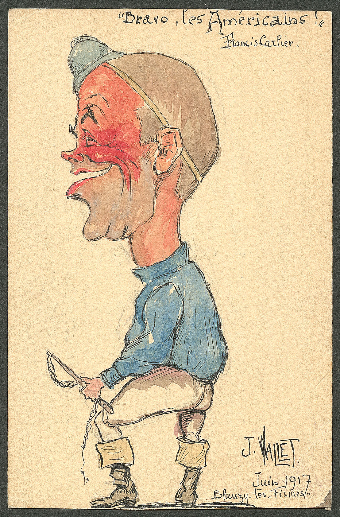 DIVERS.Lettre. Illustrations à la main. "Jockey". CP humoristique, aquarelle et plume, signée "J.Vallet" Juin 1917, voyagé. - TB (Image)