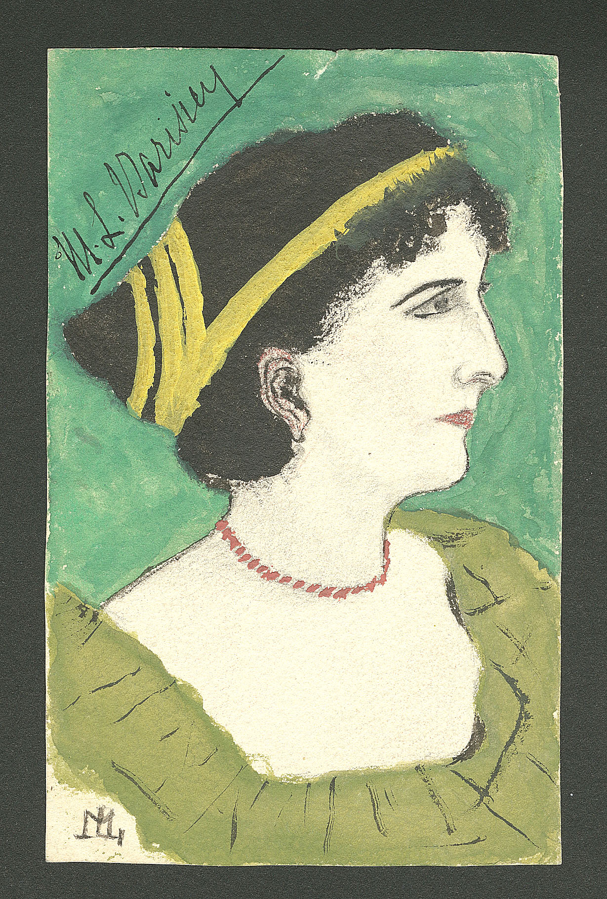 DIVERS.Lettre. Illustrations à la main. "Portrait de femme", CP aquarelle et plume, signée et voyagée. - TB (Image)