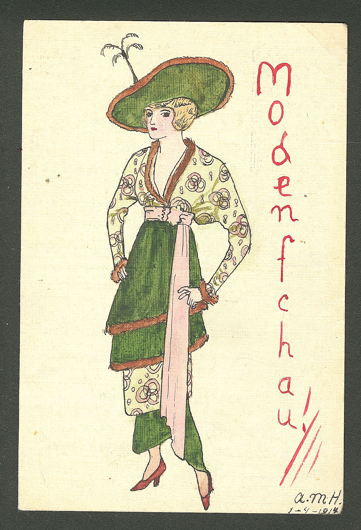 DIVERS.Lettre. Illustrations à la main. "Modenfchau", CP aquarelle et plume, signée "a.mh", neuve. - TB (Image)