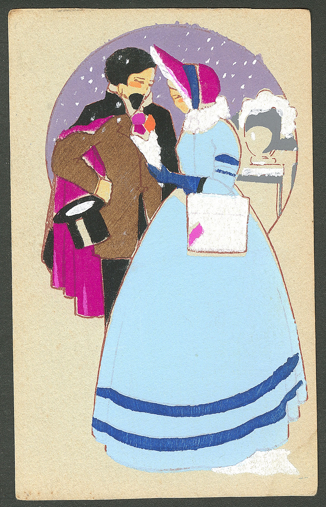 DIVERS.Lettre. Illustrations à la main. "Couple en hiver". CP neuve, aquarelle et plume, neuve. - TB (Image)