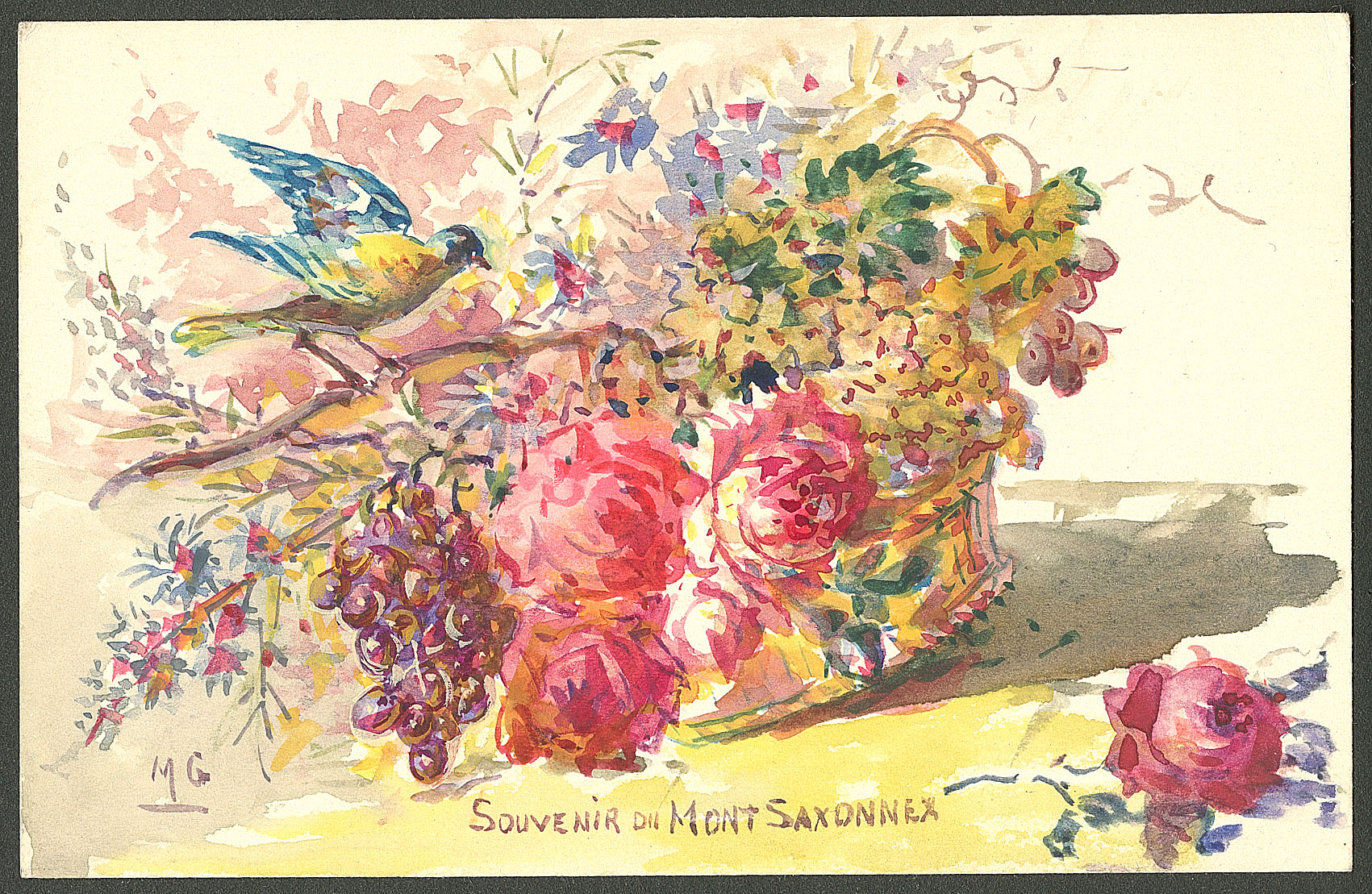 DIVERS.Lettre. Illustrations à la main. "Souvenir du mont Saxonnex", CP aquarelle et plume, voyagée, superbe (Image)