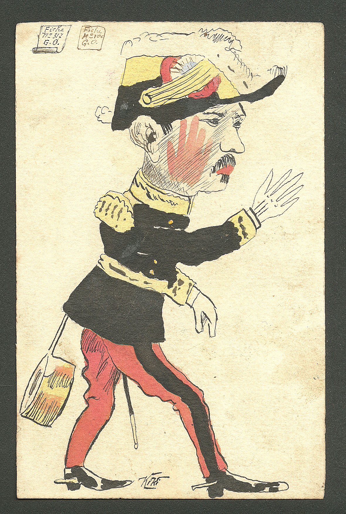 DIVERS.Lettre. Illustrations à la main. "La casserole du militaire", CP humoristique voyagée, aquarelle et plume, signée "Kiki". - TB (Image)