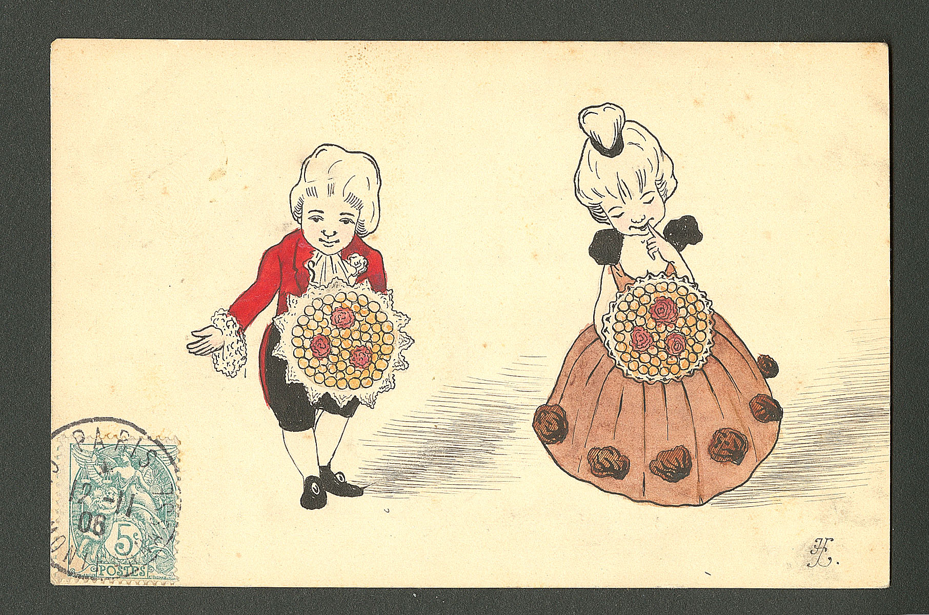 DIVERS.Lettre. Illustrations à la main. "Jeune fille timide". CP voyagée, aquarelle et plume. - TB (Image)