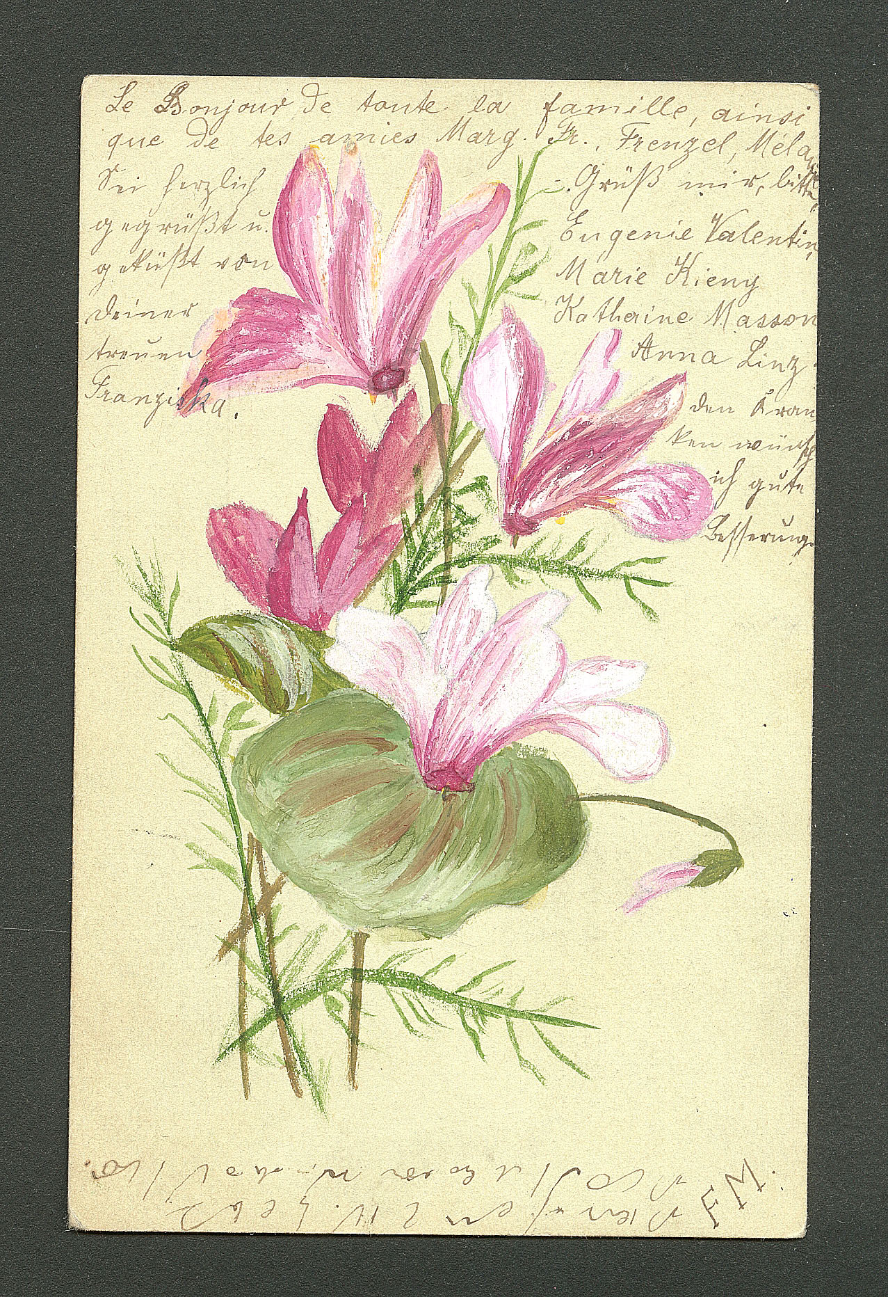 1354 c imageFRANCE. DOCUMENTS DIVERS.Lettre. Illustrations à la main. "Bouquet de fleurs". CP allemande voyagée, aquarelle et plume. - TB (Image)
