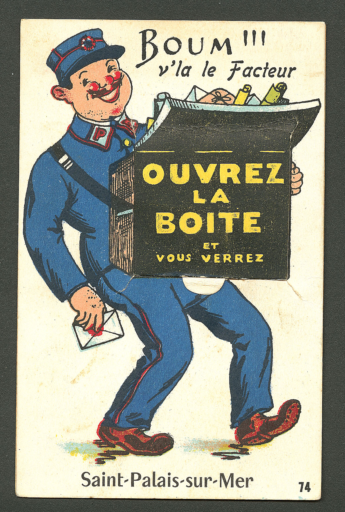 1358 c imageFRANCE. DOCUMENTS DIVERS.Lettre. CP humoristique "Boum !!! v'la le facteur", avec dépliant, de St Palais sur Mer, voyagée. - TB (Image)