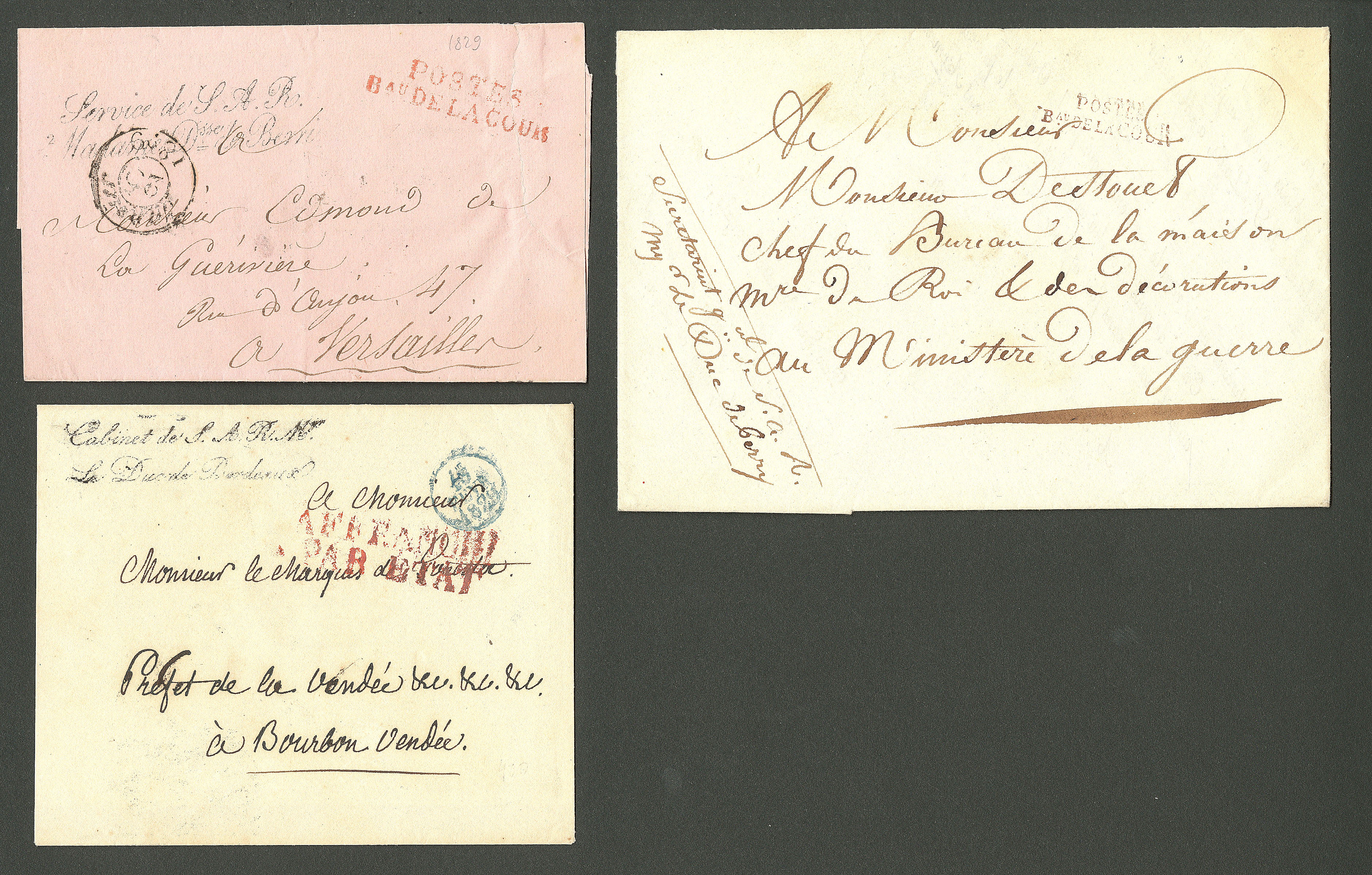 1363 c imageFRANCE. DOCUMENTS DIVERS.Lettre. 1817-1829, 2 lettres et une enveloppe avec marques diverses. - TB (Image)