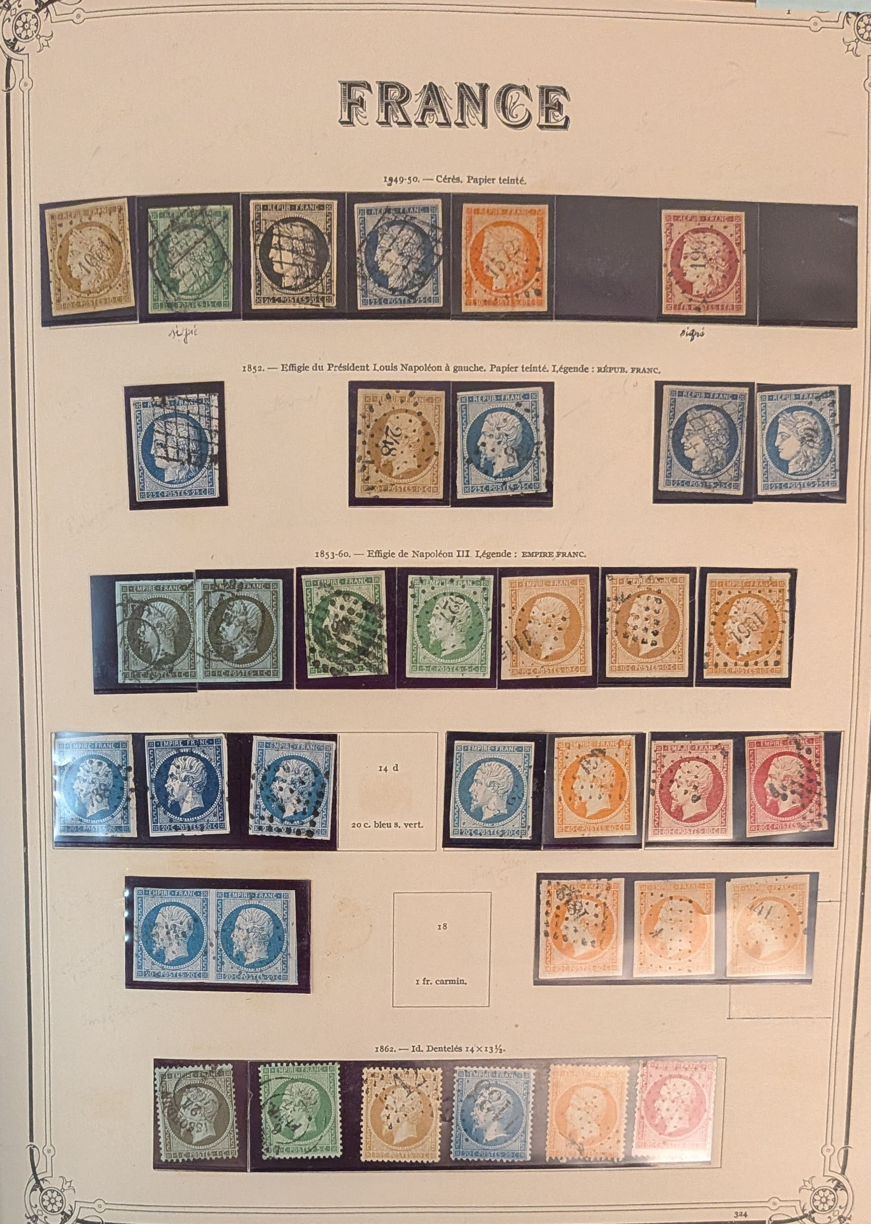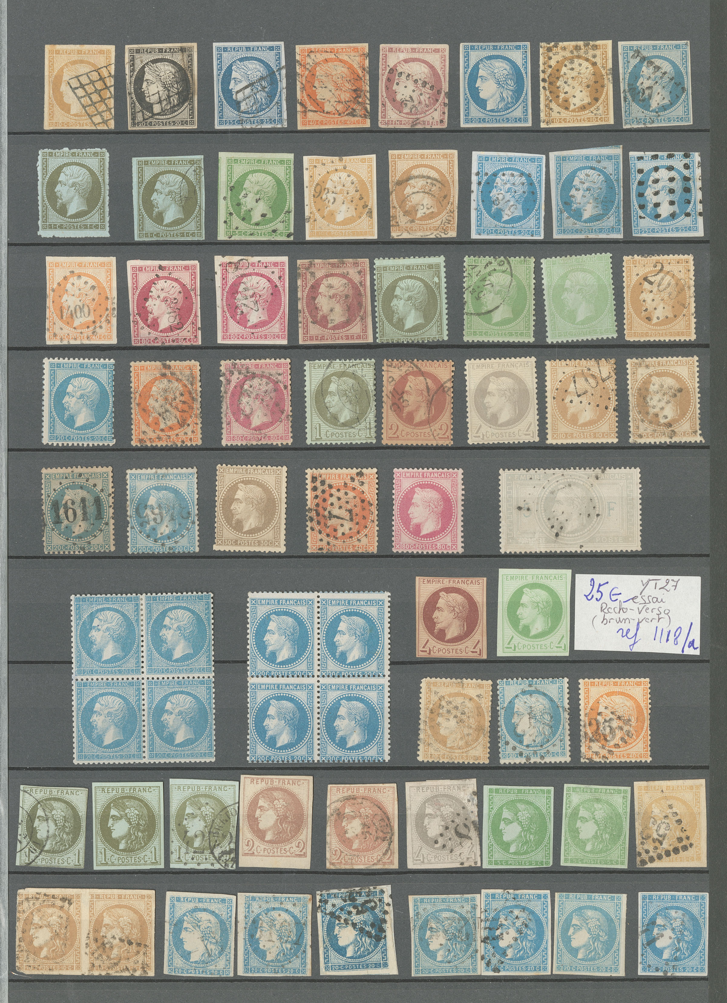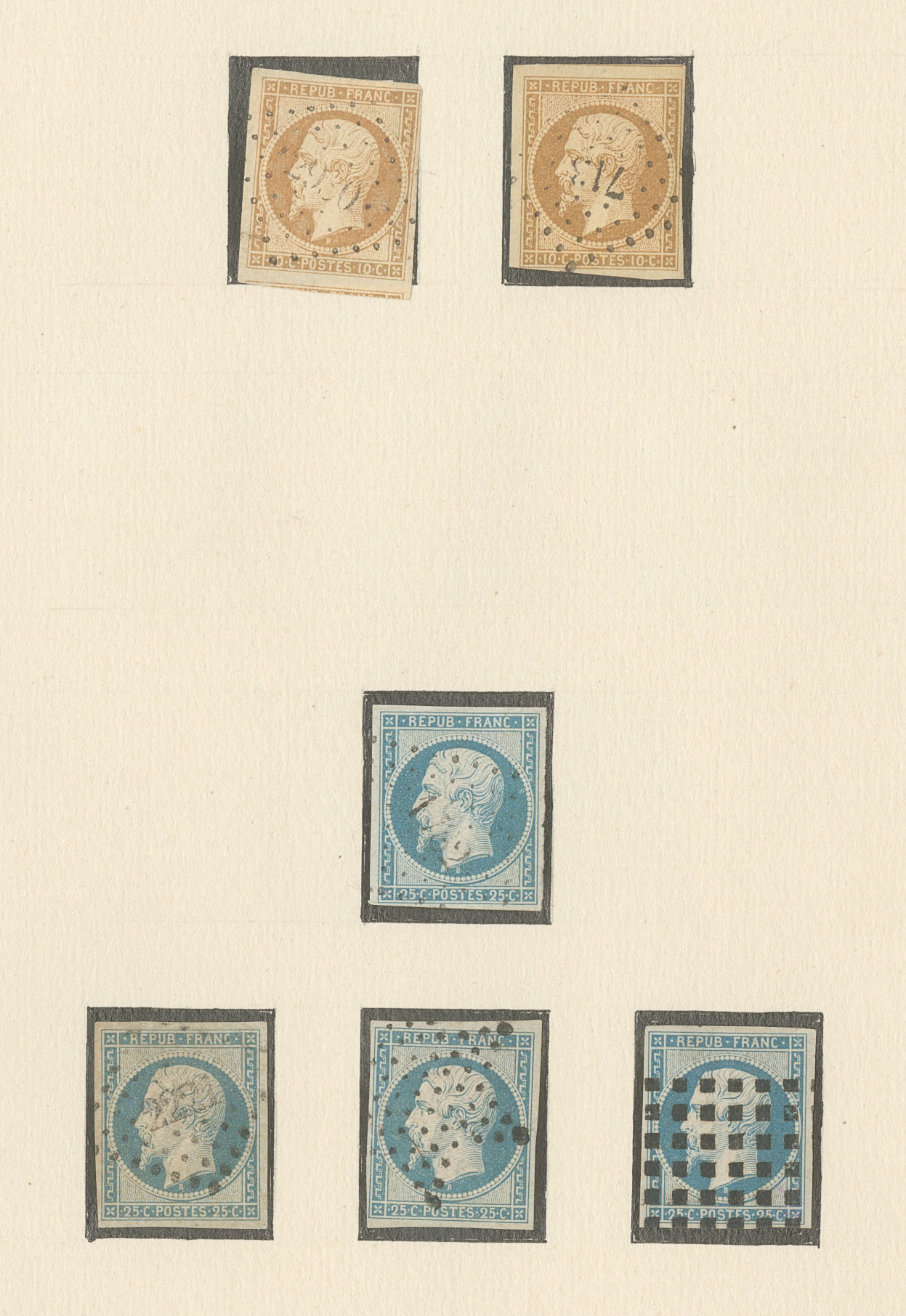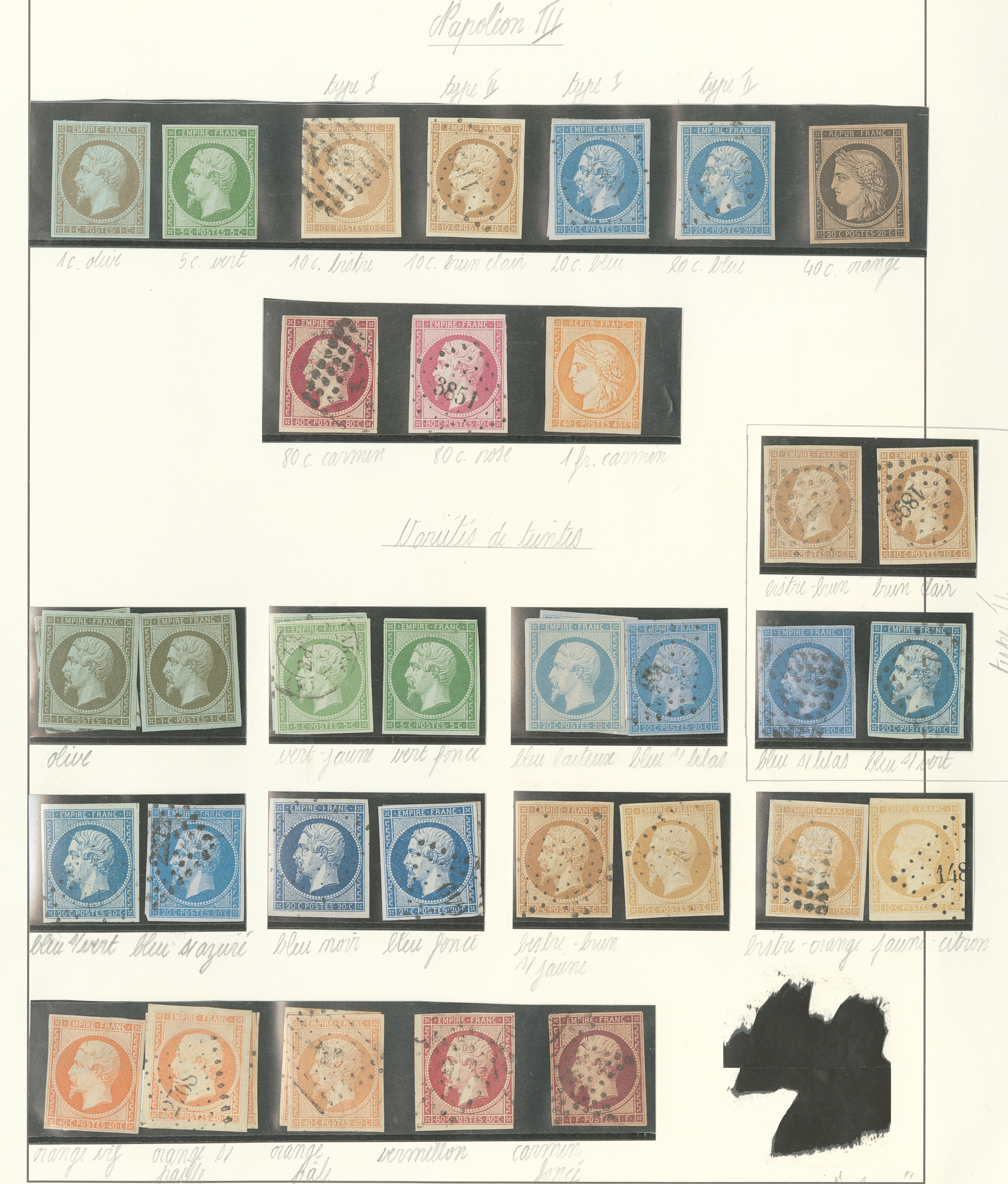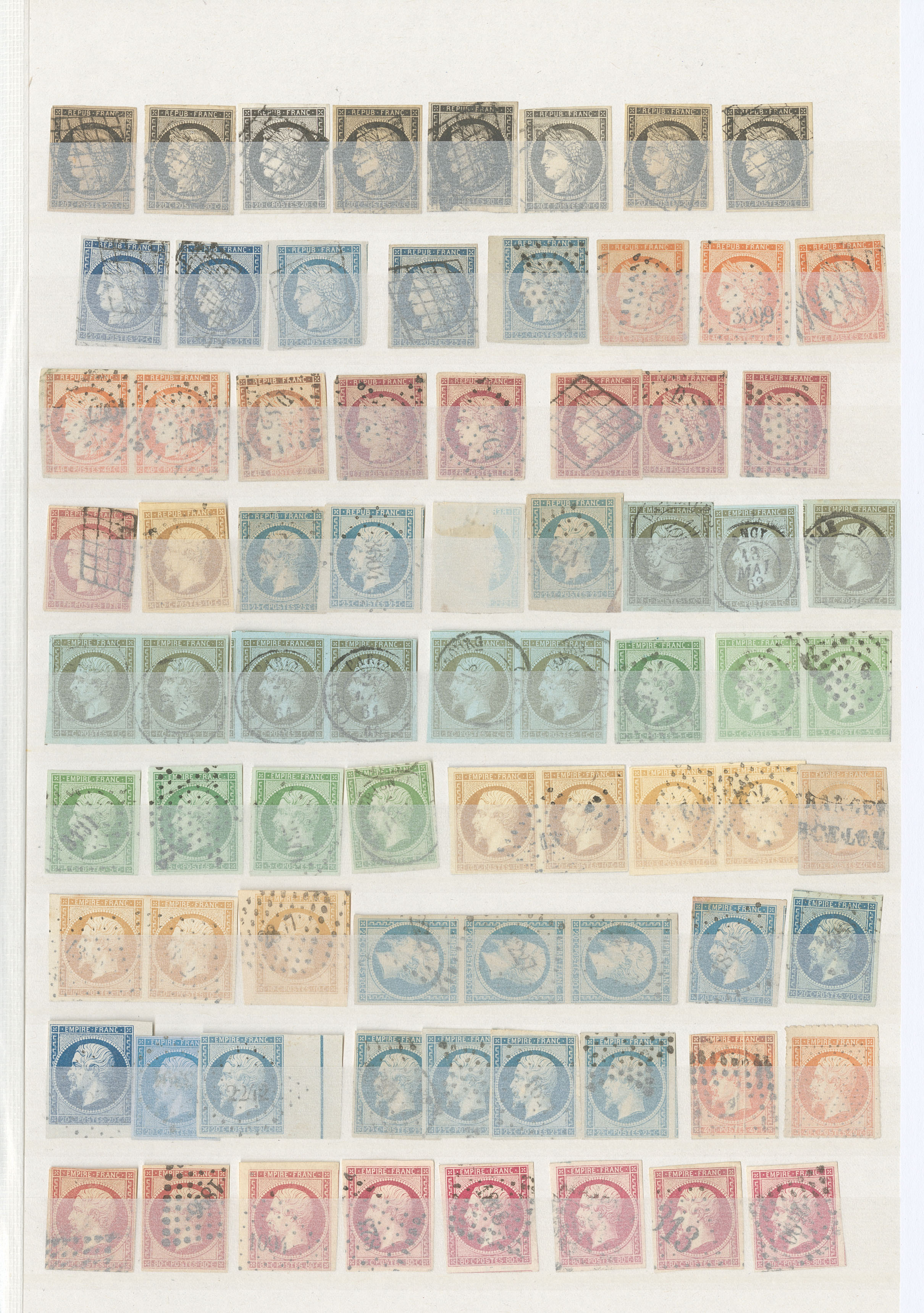 1364 imageFRANCE. COLLECTIONS DE FRANCE. 1849-1859, entre les N°3 et 17B, dont paire et multiples, nuances et obl diverses. - TB, B ou pd (cote Yvert : 16000€) (Image)