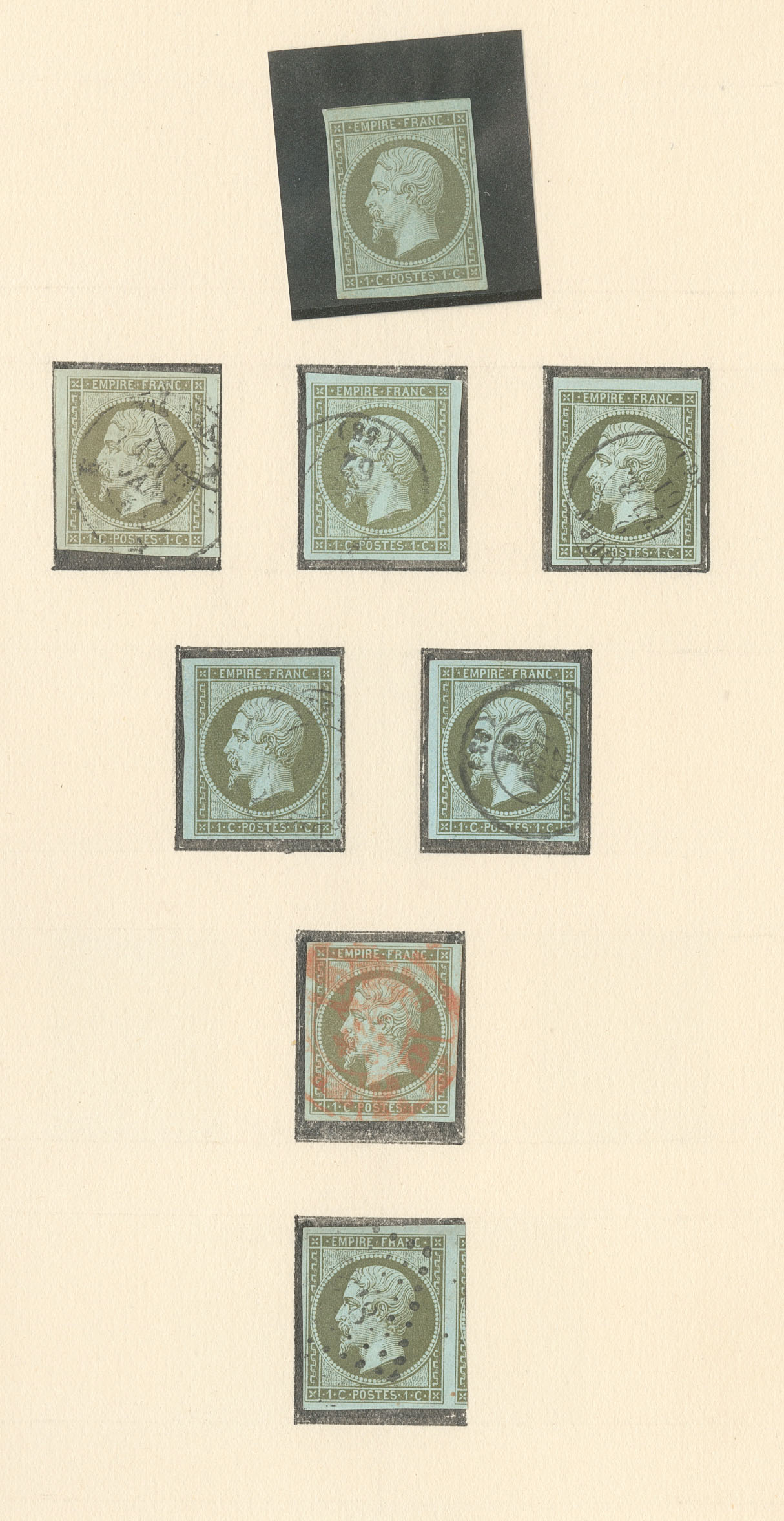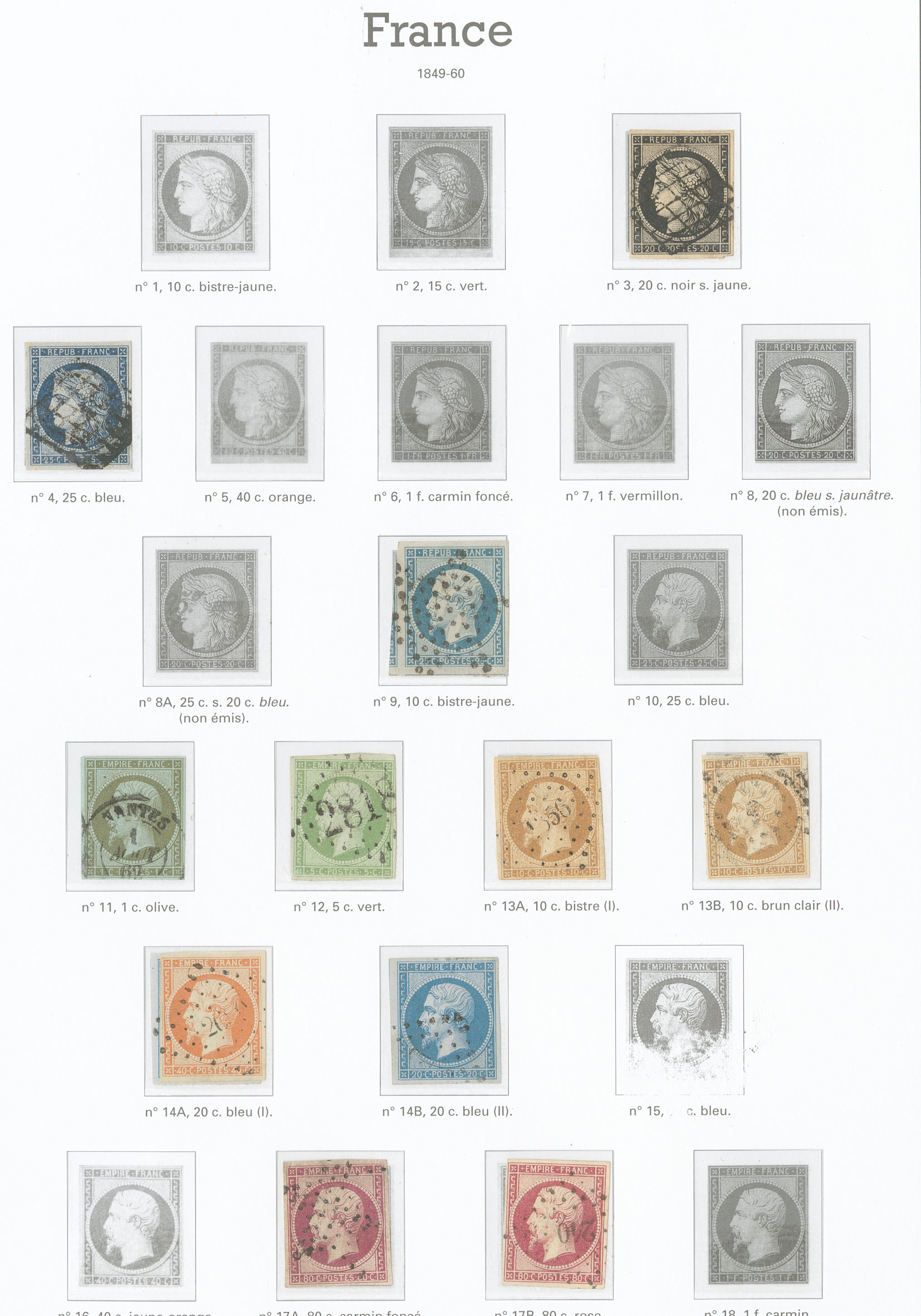 1365 imageFRANCE. COLLECTIONS DE FRANCE. 1849-1860, entre les N°1 et 18, nuances et obl diverses, qqs ex (*), tous états (Image) (Image2) (All Images)