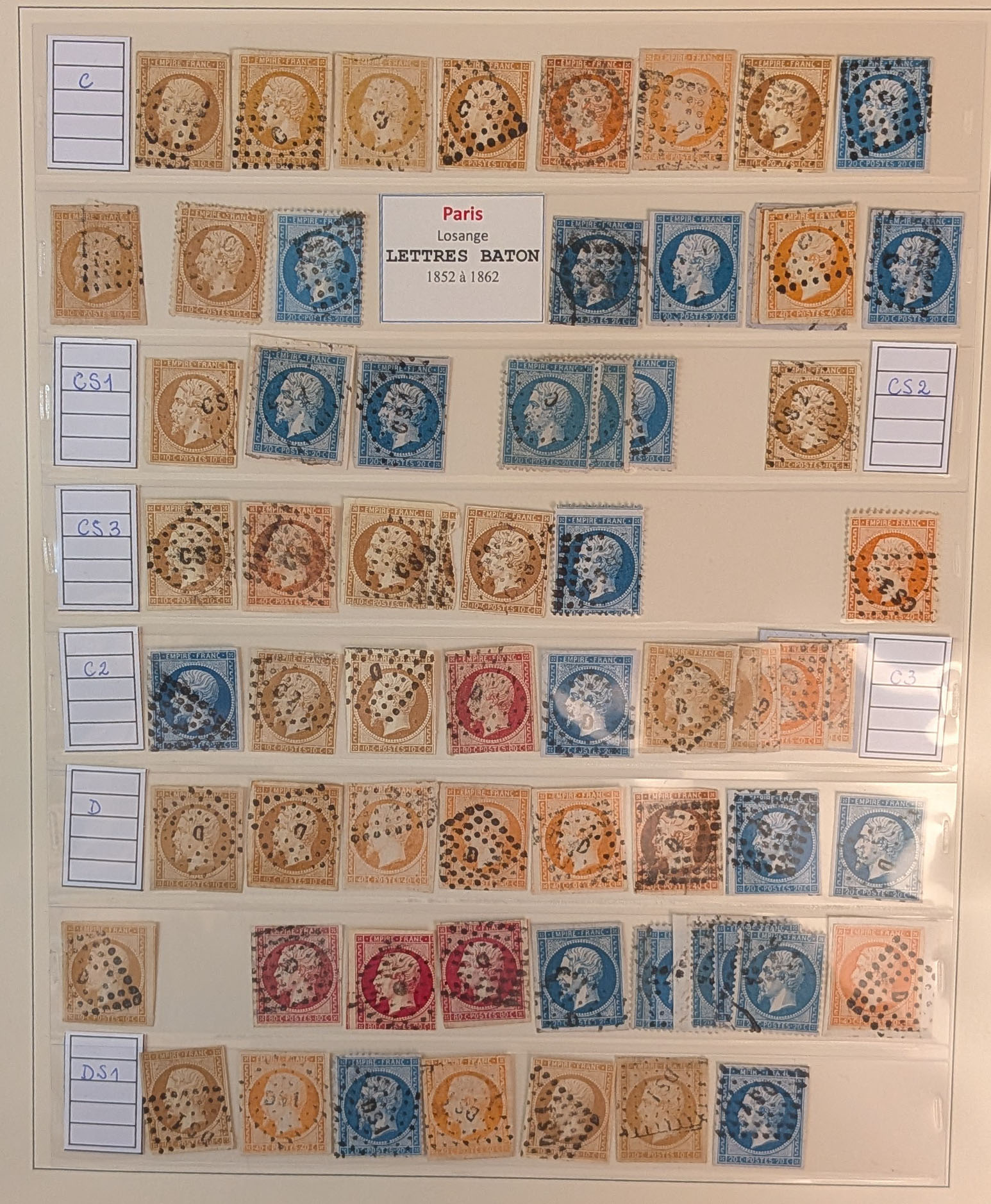 1372 imageFRANCE. COLLECTIONS DE FRANCE. Oblitérations de Paris. 1851-1863, obl losanges bâtons et romaines, sur Empire et couleurs diverses, nombreux fragments et 6 plis, en 1 album, tous états (Image) (Image2) (Image3) (Image4) (Image5) (All Images)