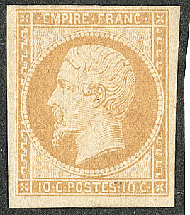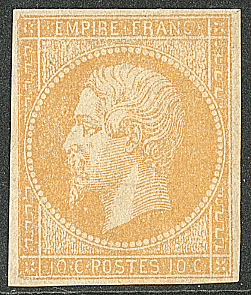 DENTELE. *No 13Al, citron impression défectueuse, nuance vive, gomme légèrement diminuée mais TB (cote Yvert : 2000€) (Image)