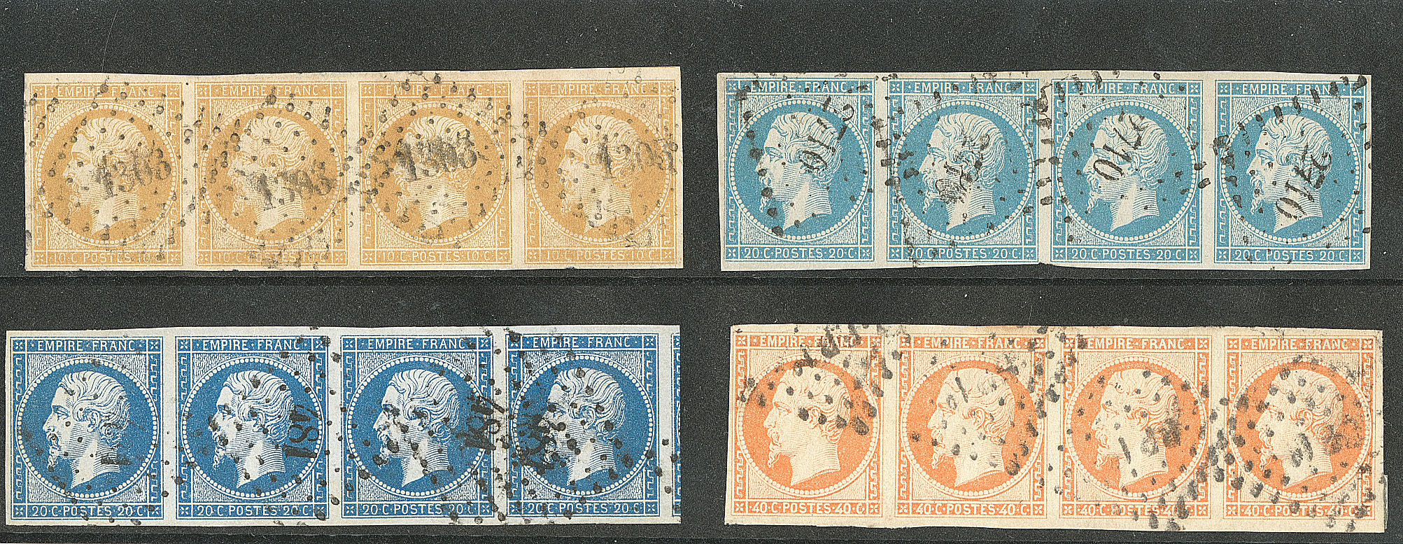 DENTELE. Nos 13Al, 14A, 14Aa, 16, tous en bande de quatre. - TB ou B (cote Yvert : 558€) (Image)