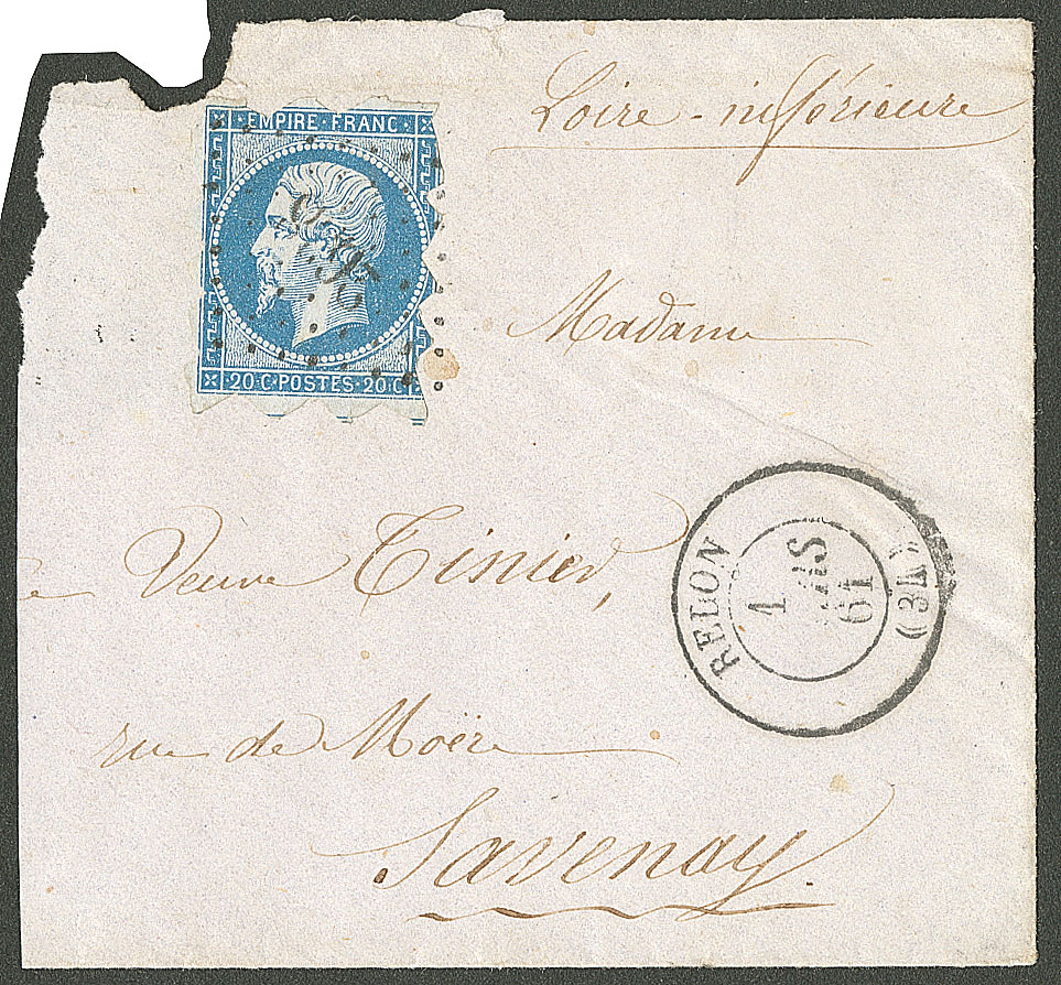 DENTELE.Lettre. Piquage de Redon. No 14A, obl pc 2638 sur enveloppe incomplète avec cad Redon mars 61. - TB (Image)