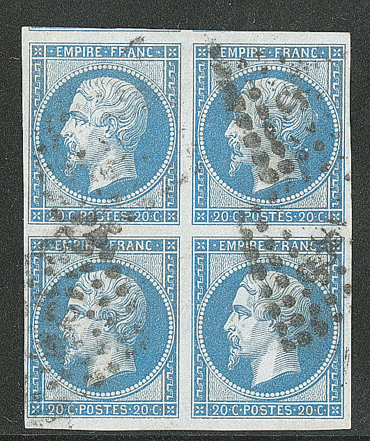 DENTELE. ** No 14A, bleu I, bloc de quatre (deux ex *). - TB (cote Yvert : 2000€) (Image)