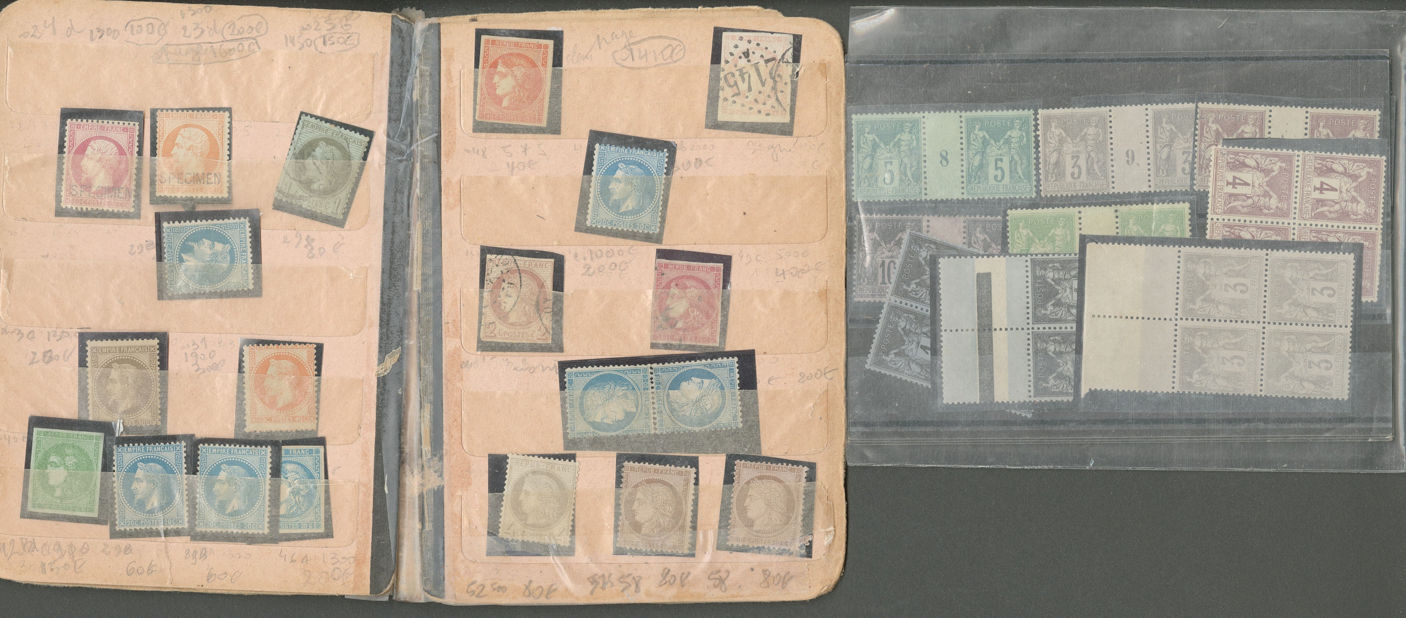 FRANCE. *1870-1960 (Poste, PA, Taxe), de bonnes valeurs, des multiples dont des ex obl et **, + Colonies Générales, tous présentés sur feuilles de lots de ventes publiques. - TB, B ou pd (Image) (Image2)