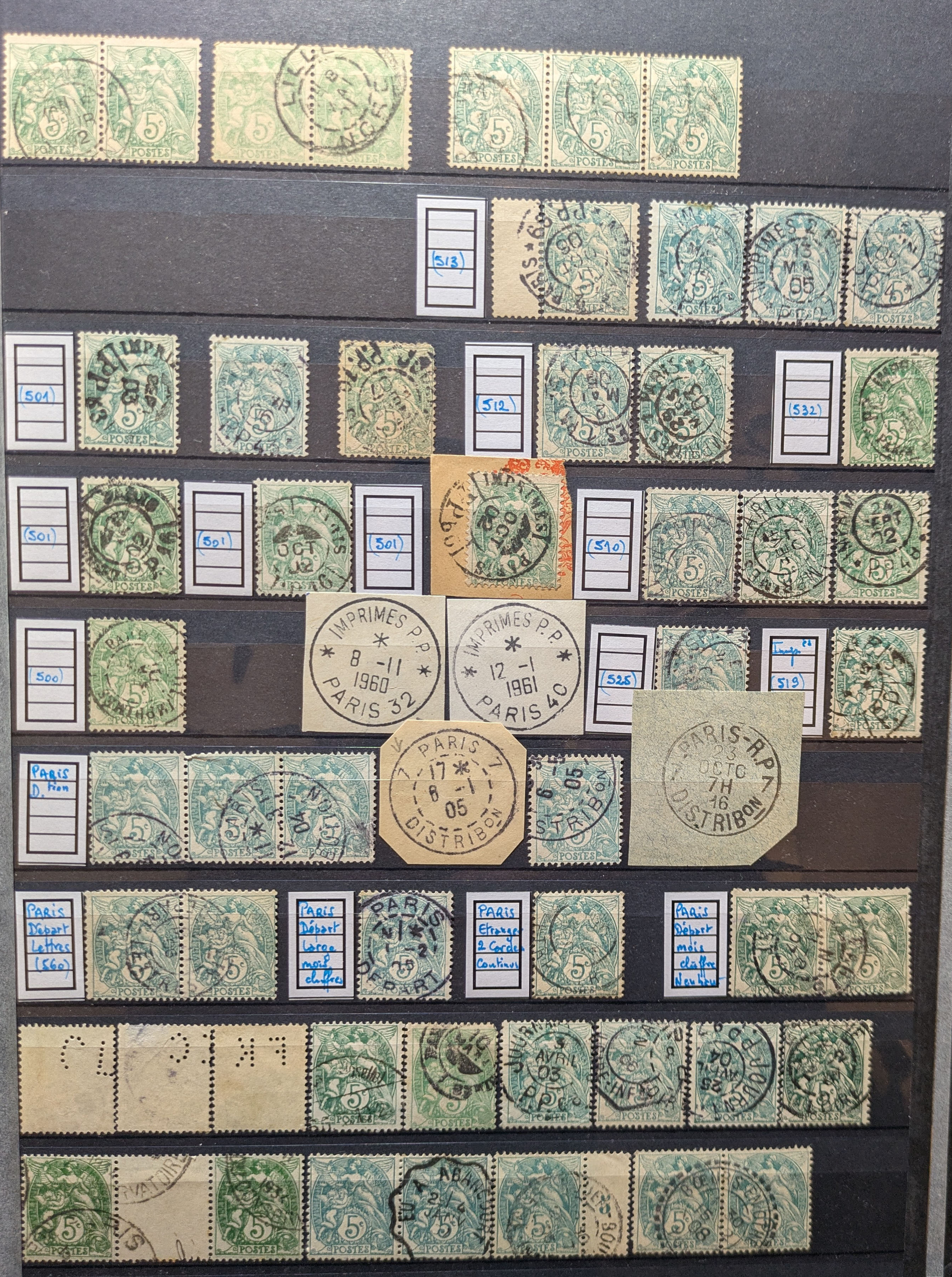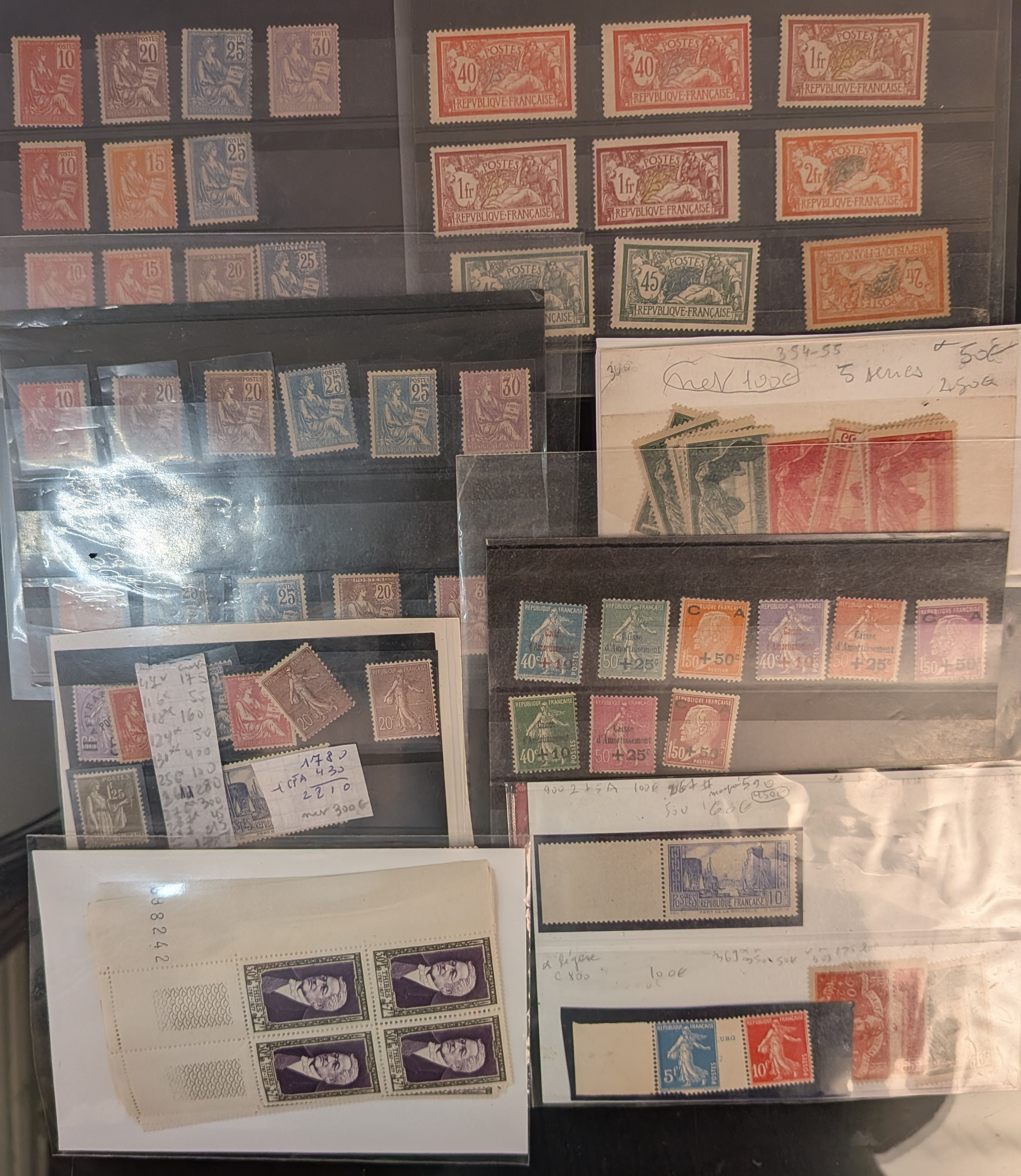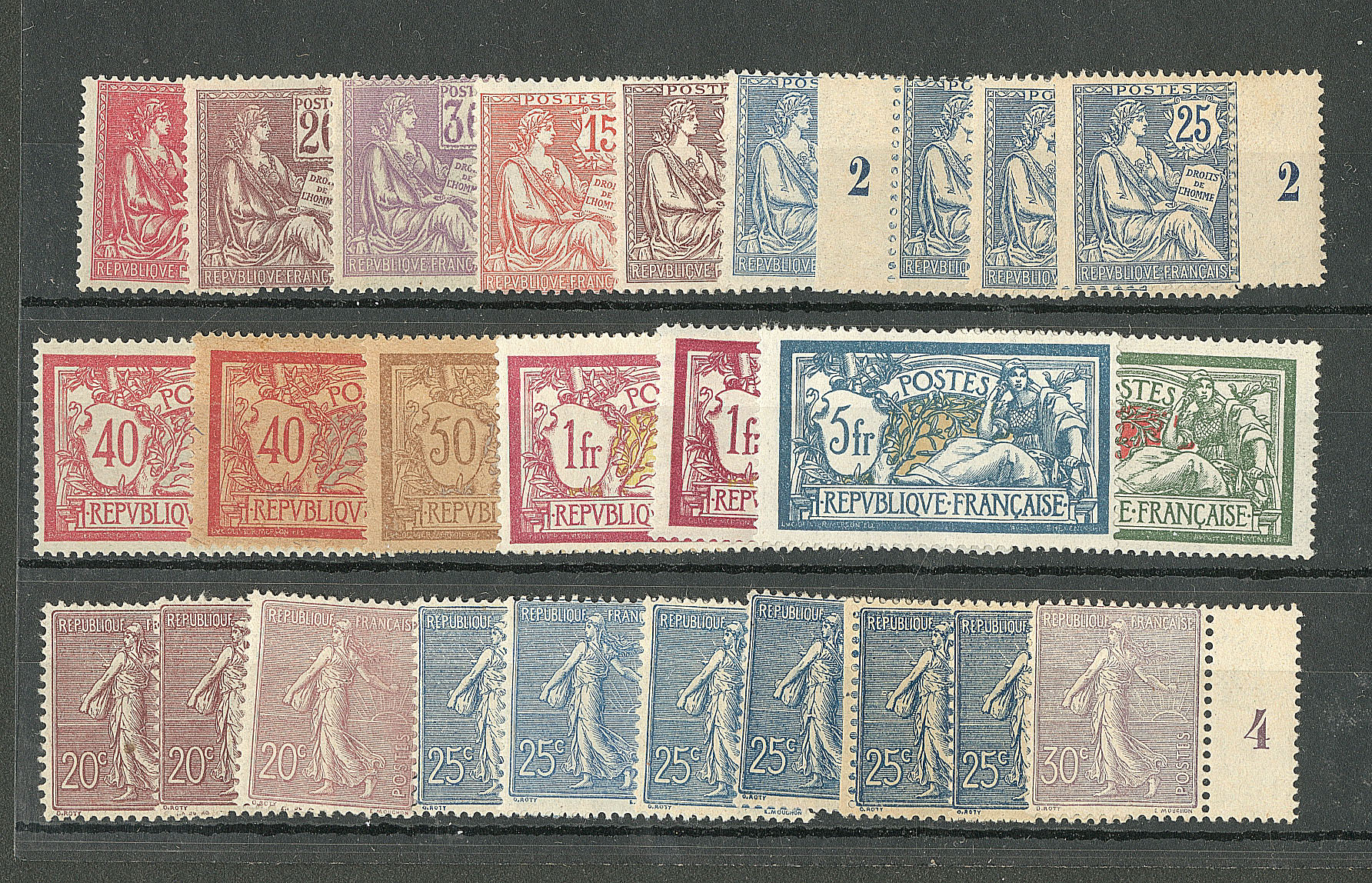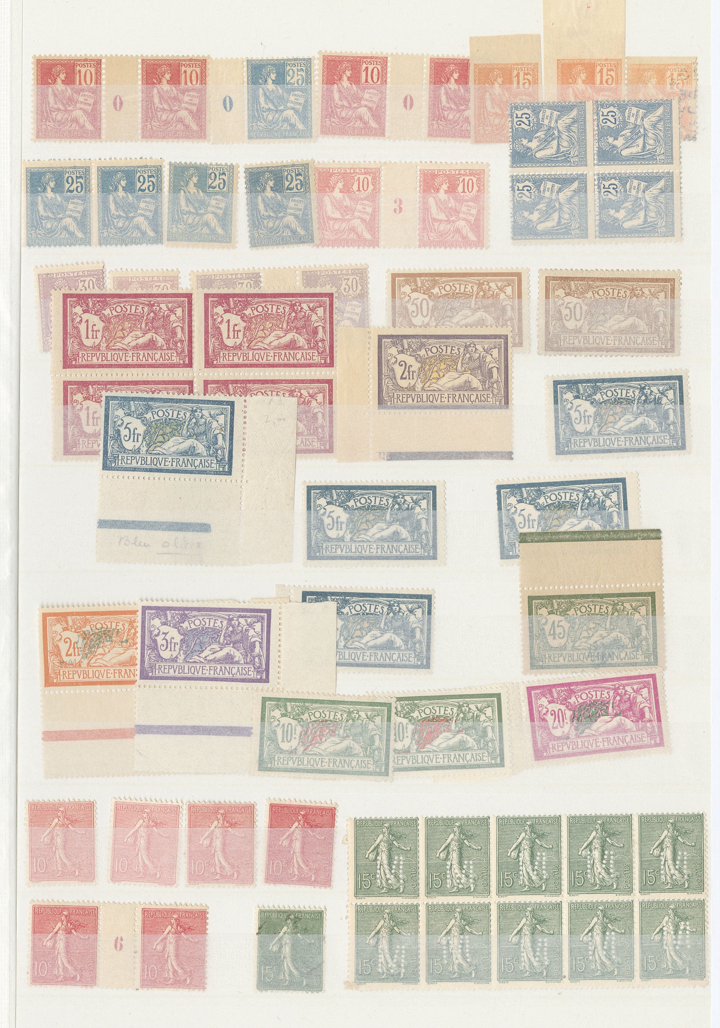 FRANCE. ** 1900-1903 (Poste), divers Mouchon, Merson et Semeuse, qqs doubles et multiples et des ex *. - TB (Image)