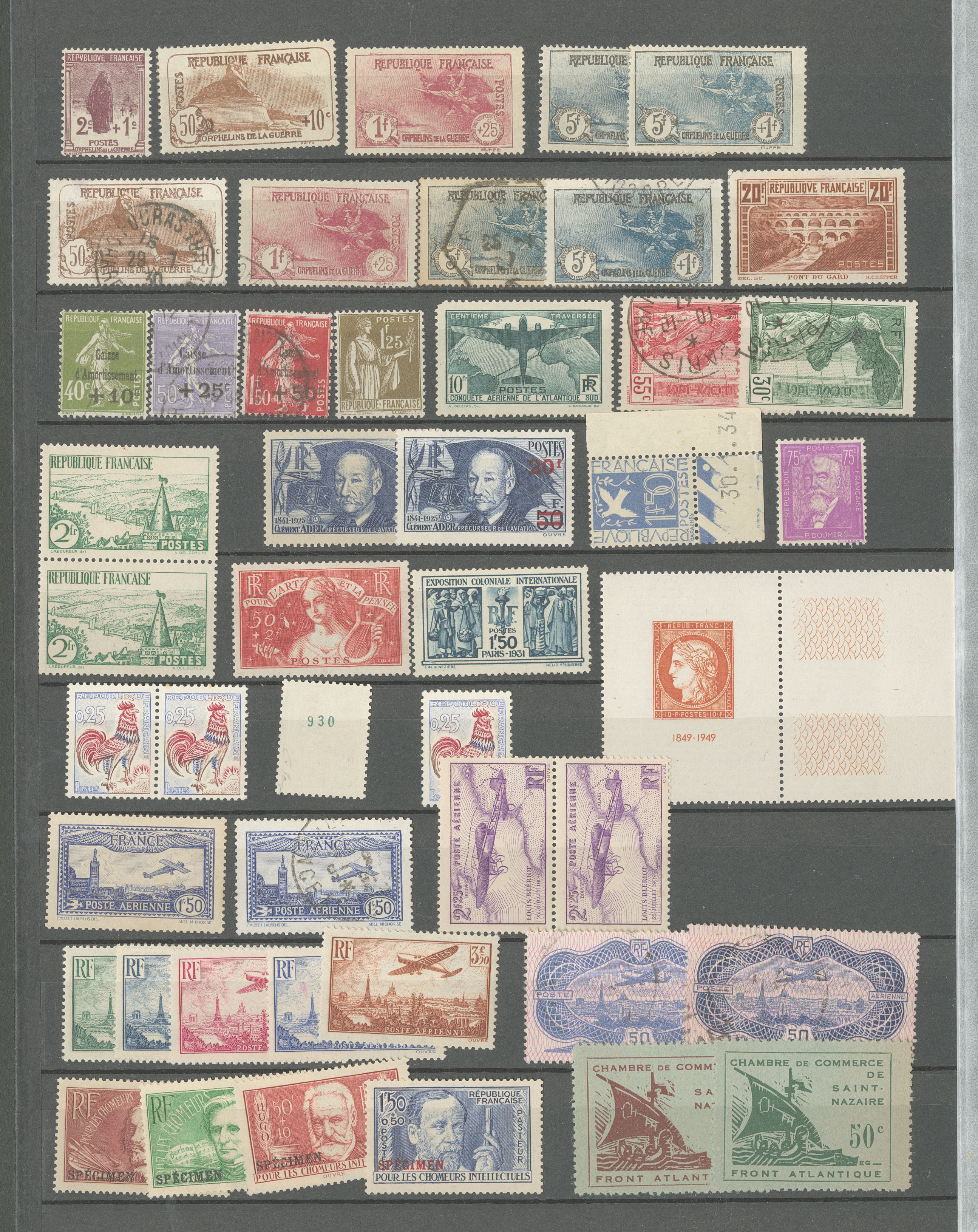 FRANCE. *1900-1962 (Poste, PA, etc.), de bonnes valeurs dont 122 (2 dont un (*)), PA 15 obl (2), etc., qqs doubles et variétés, des ex **, (*) et obl. - TB, B ou pd