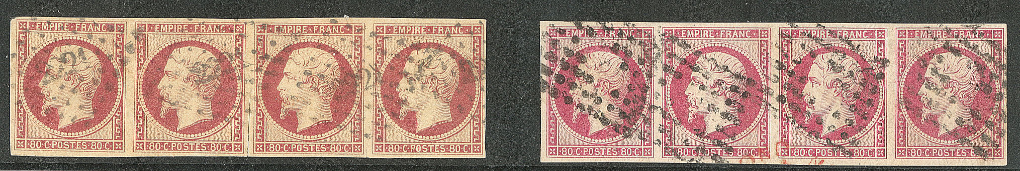 DENTELE. Nos 17A, 17B, en bande de quatre. - TB (cote Yvert : 1025€) (Image)